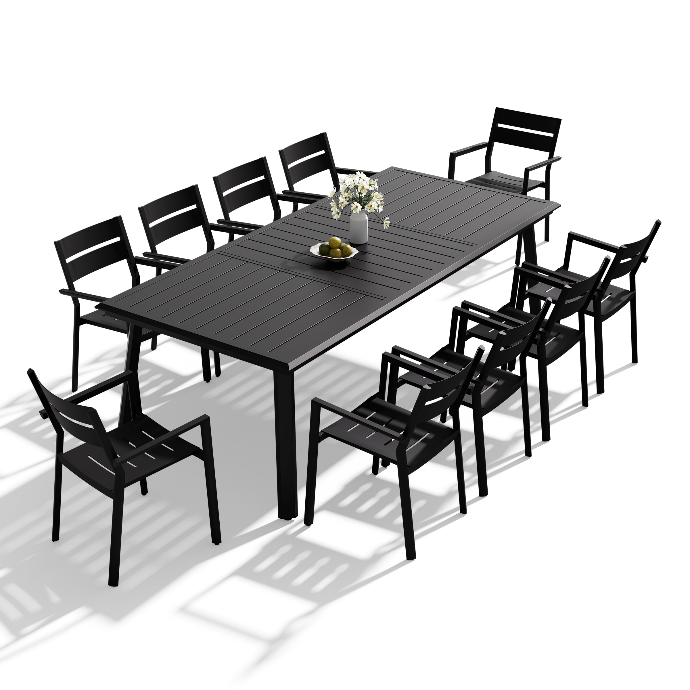 7/9/11/13-Piece Set Outdoor Aluminum Dining Table with Umbrella Hole and Stackable Chairs
