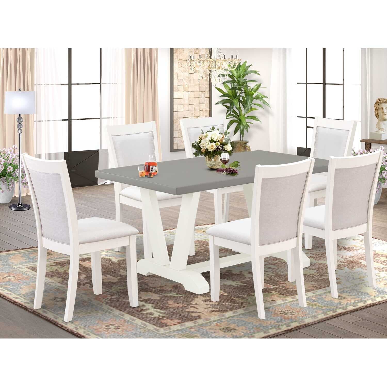 HomeStock 7-Piece Rectangle Wire Brushed Linen White Finish Solid Wood Top Dining Table with 6 Chairs