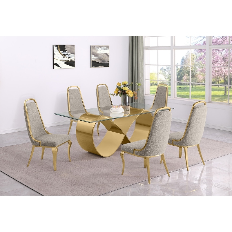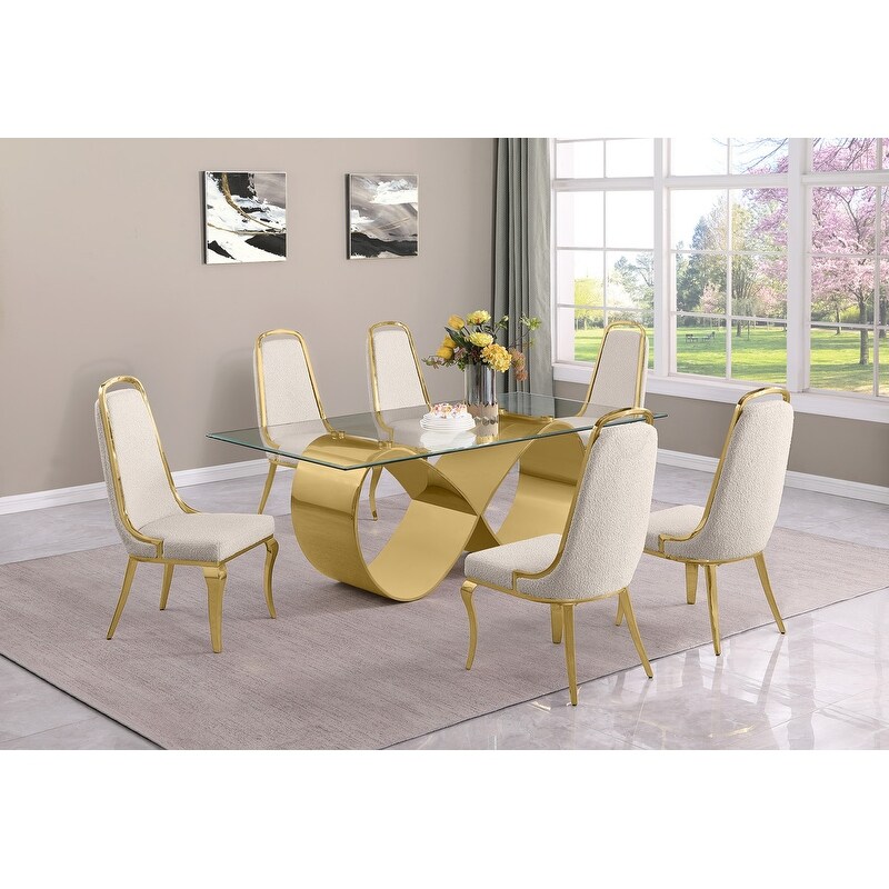 Nadine Dark Walnut Finish Rectangular Dining Set - Curved Back Chairs by iNSPIRE Q Modern