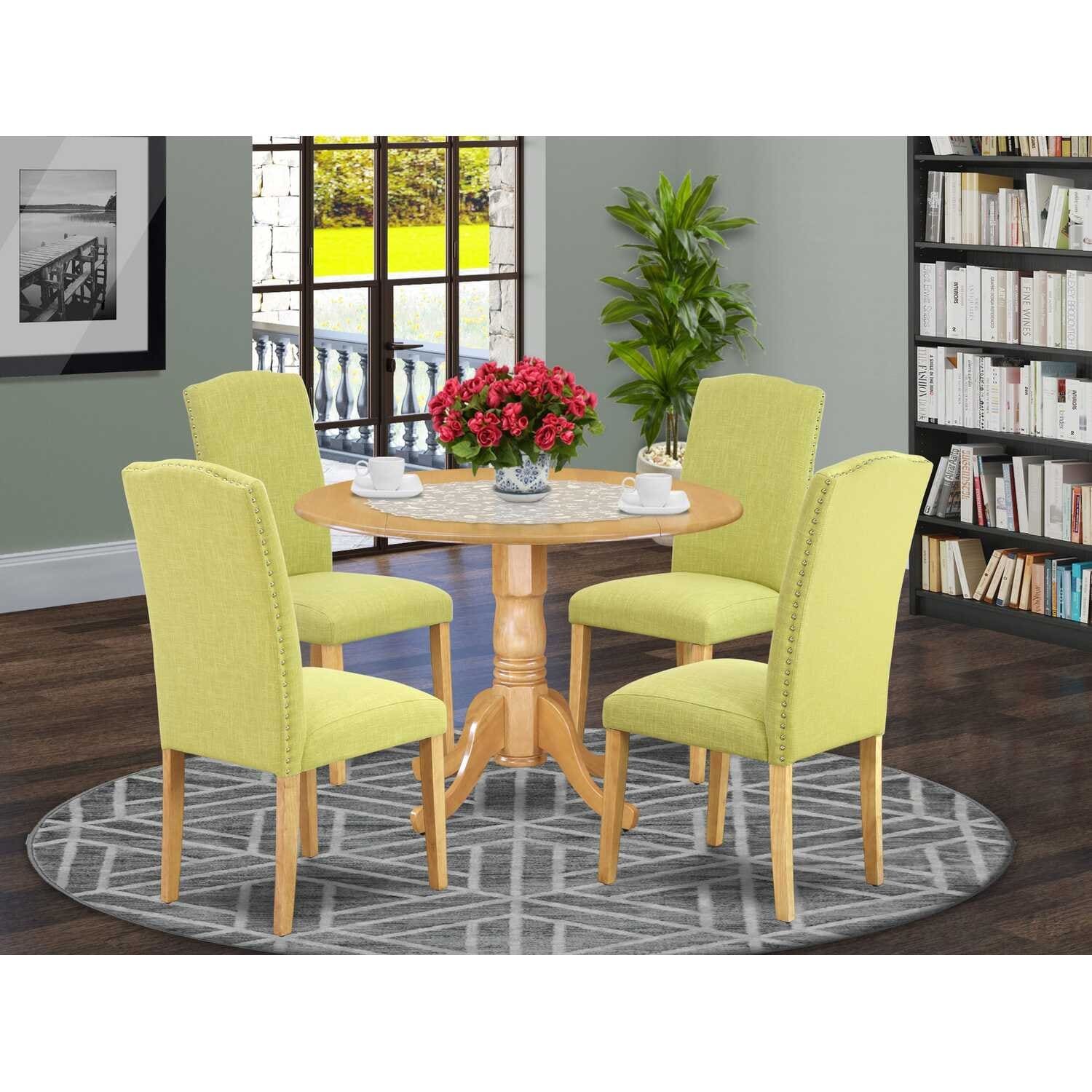 Modern Dining Set - Round Table & 4 Chairs - 42 Inch - Oak Finish - Kitchen Dining Room Furniture