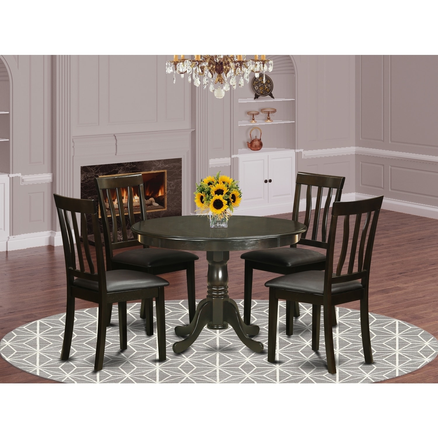 Round Kitchen Dining Set for 4 - 5 Piece Table & Chair Set - Cappuccino Finish