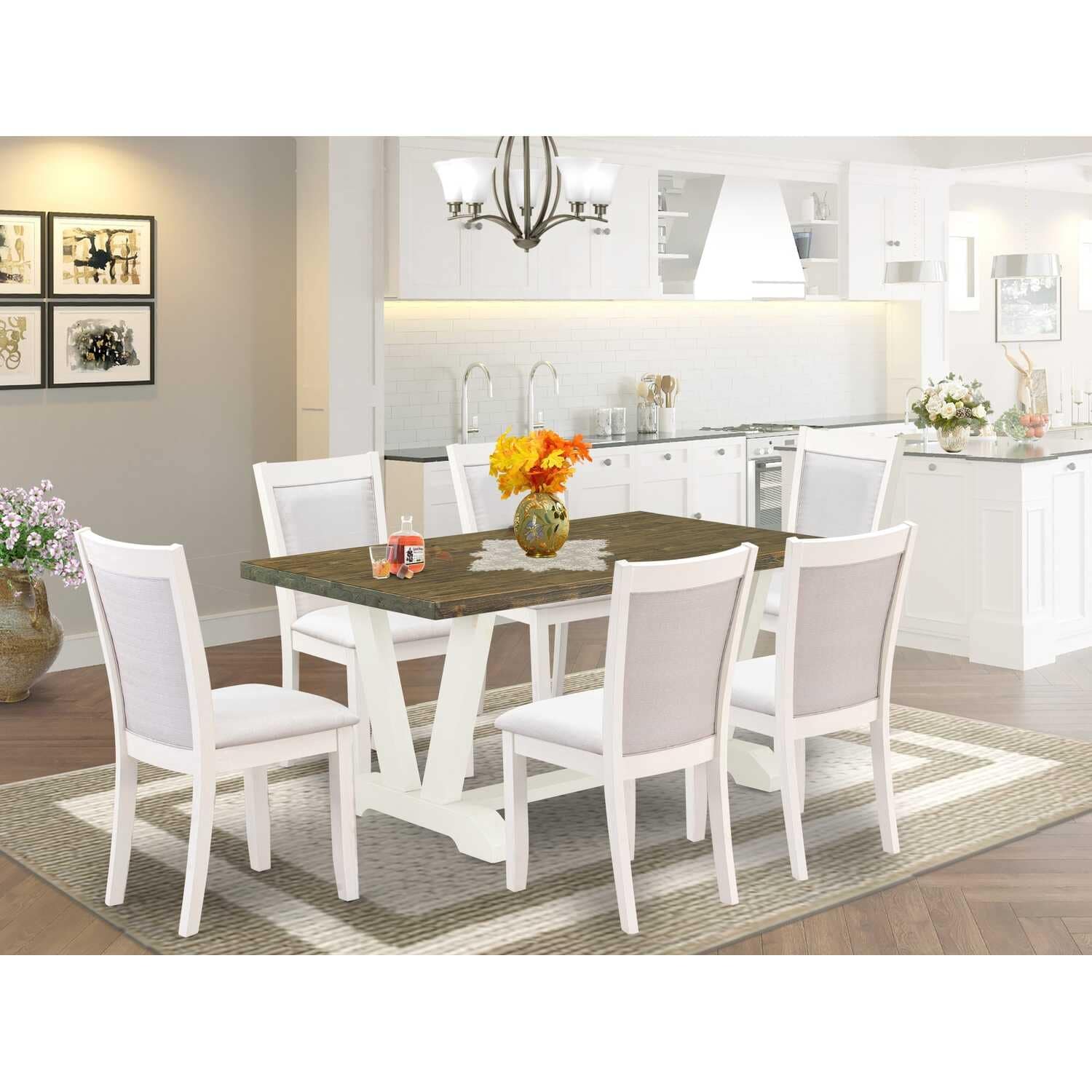 HomeStock 7-Piece Wire Brushed Linen White Finish Solid Wood Top Dining Table with 6 Chairs