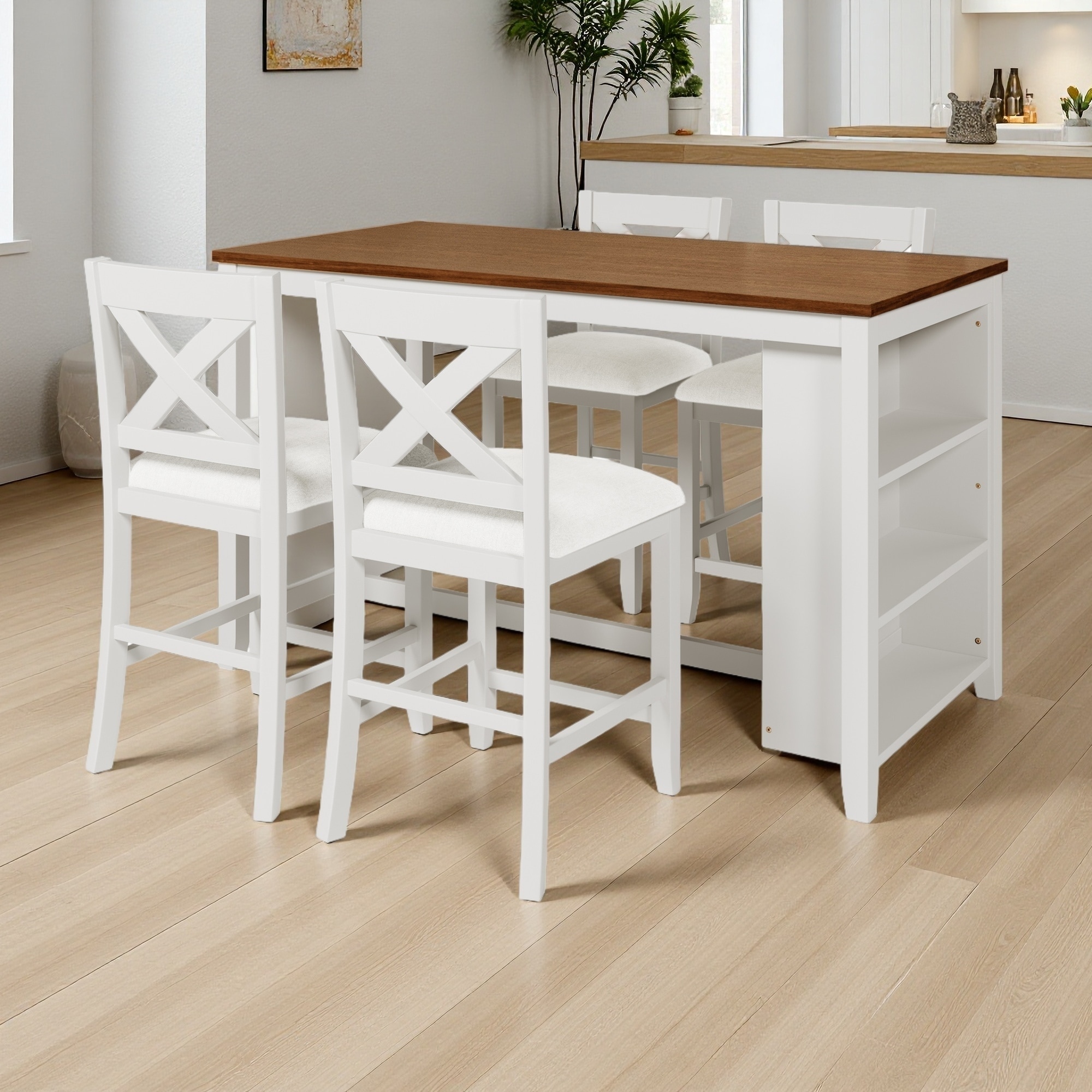 5-Piece Rustic Farmhouse Counter Height Dining Set, Wooden Bar Table with 4 Chairs