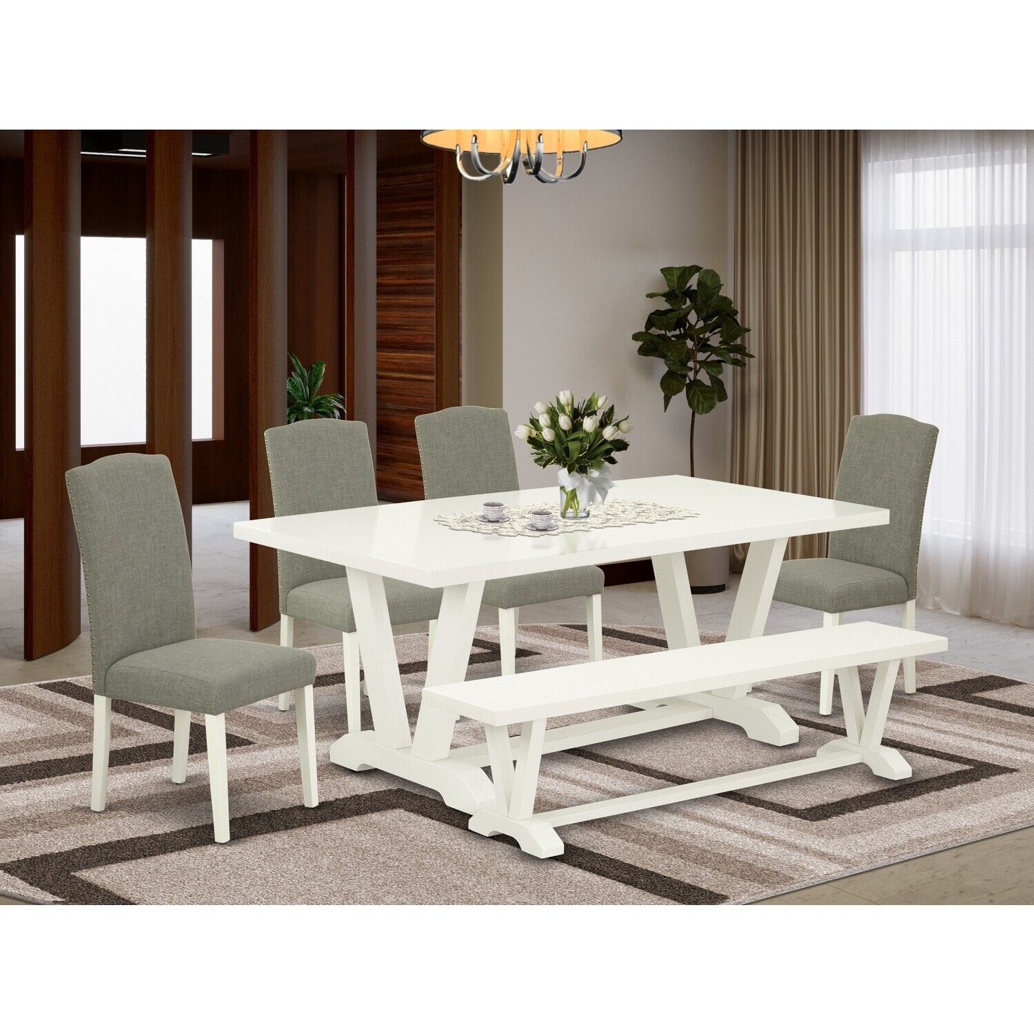 Mid Century Dining Set - 6 Piece Table and Chair Set with Bench - Kitchen Table Set