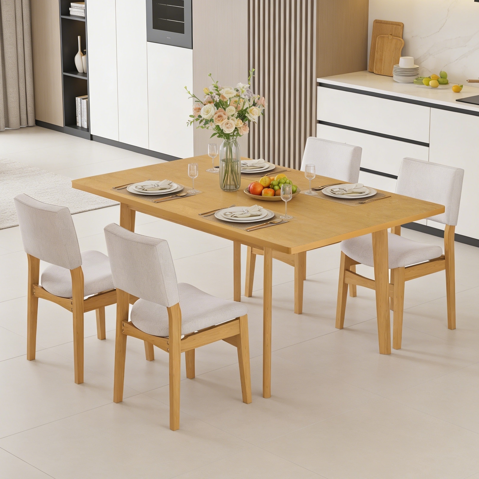 5-Piece Wood Rectangular Dining Table Set with Linen Upholstered Chair