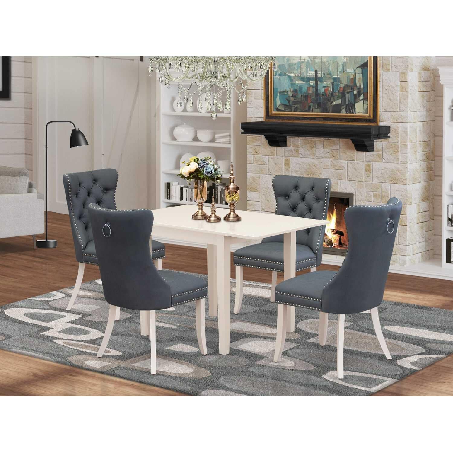 HomeStock 5-Pc Black Solid Wood Top-Rectangular Button Tufted Upholstered Dining Room Set with Butterfly Leaf-Seats 4
