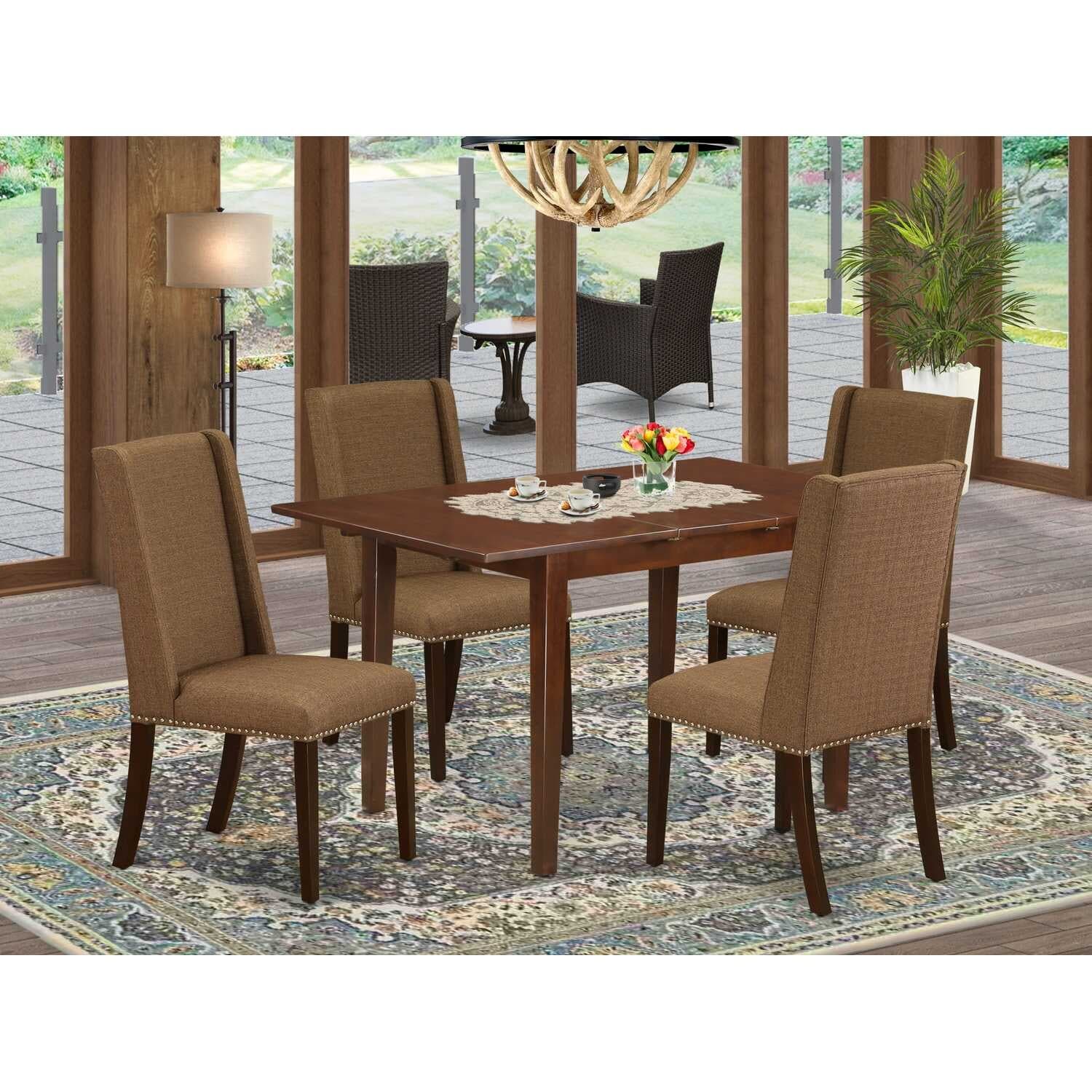 HomeStock 5-Piece Mahogany Finish Solid Wood Top Dining Table with 4 Parson Chair with Butterfly Leaf