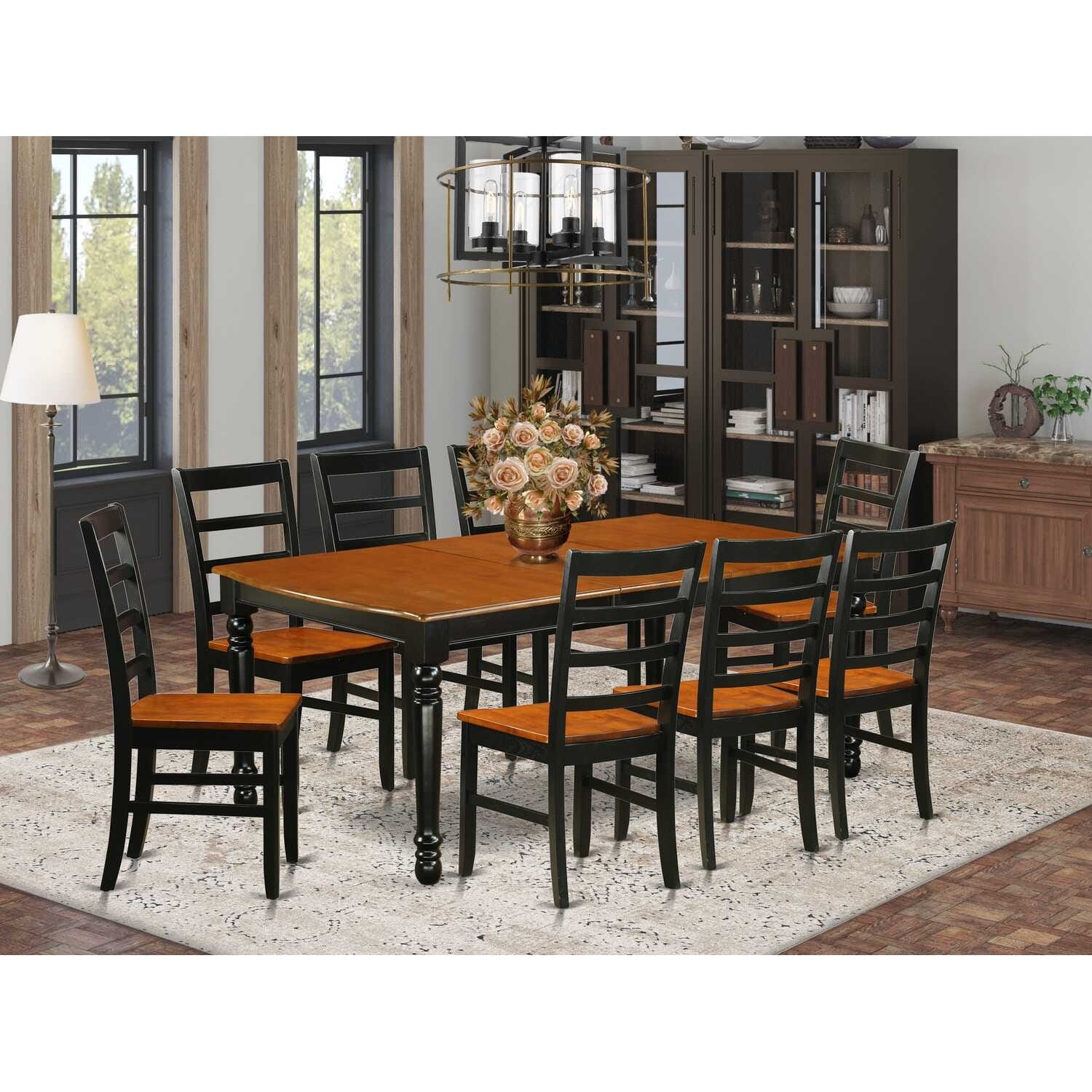 Kitchen Dining Chair Set - 9 Piece Table & Chair Set - Black Cherry Finish - Home Dining Room Furniture