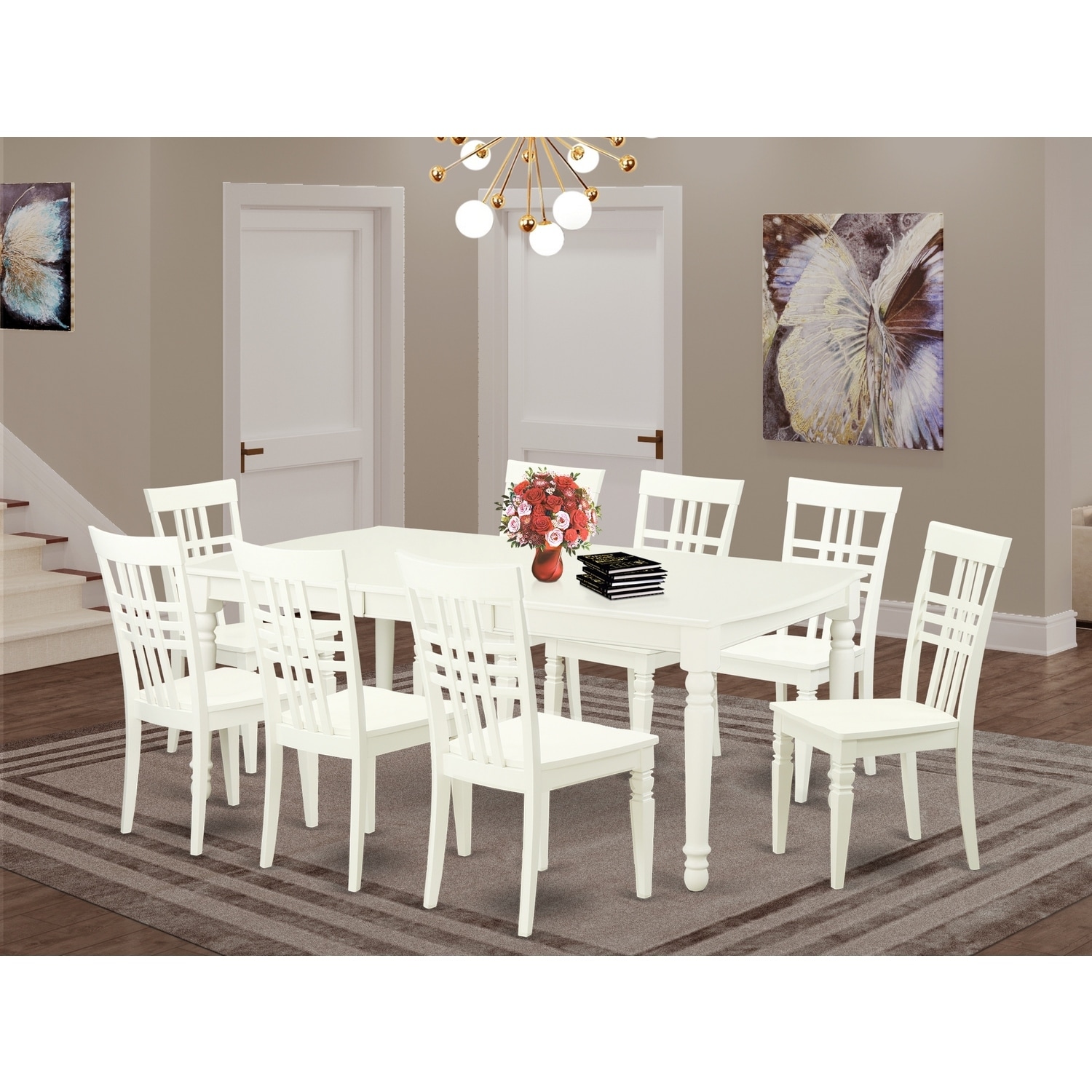 Dining Room Set 9 Piece Table & Chairs - Eclectic Elegance Linen White Finish - Kitchen Furniture Set