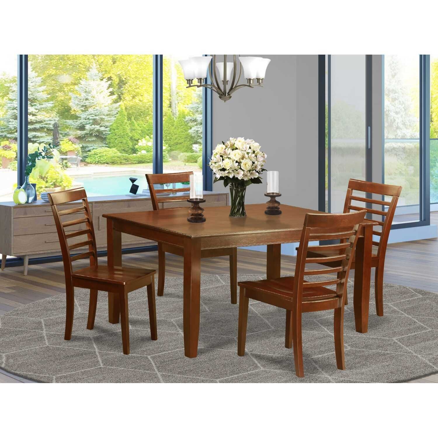 3-Piece Saddle Brown Finish Solid Wood Top - Dining Room Set - Seats 4