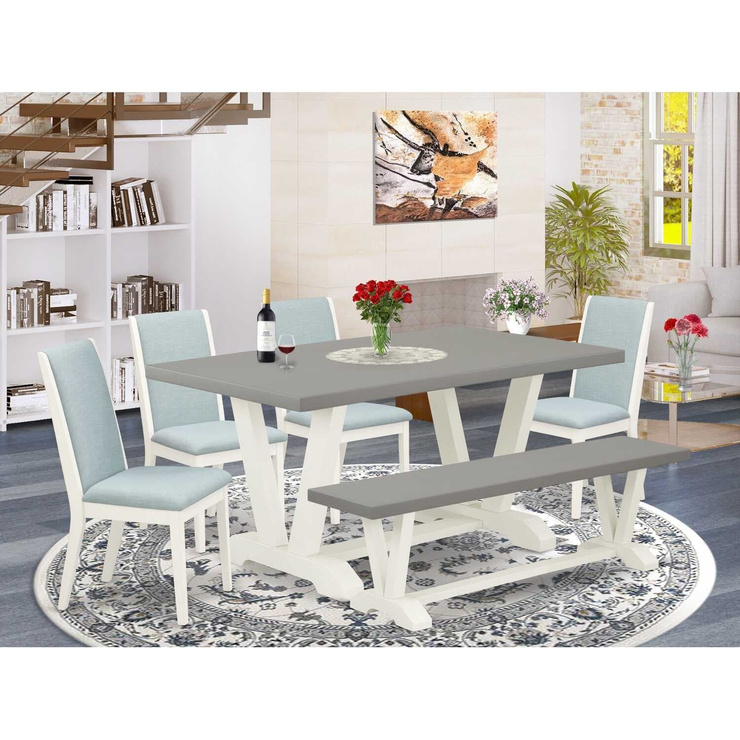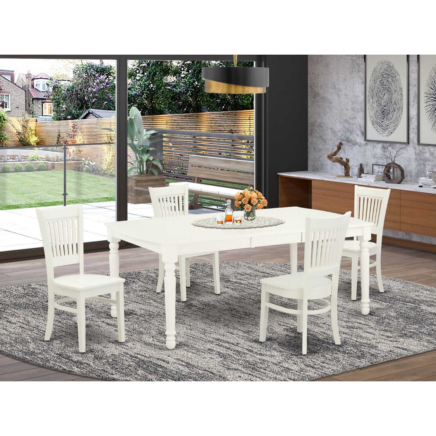 HomeStock 5-Pc Linen White Finish Solid Wood Top - Dining Room Set - Seats 4