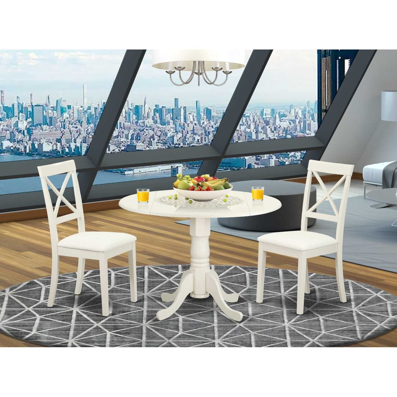 3-Piece Linen White Finish Solid Wood Top - Dining Room Set - Seats 4