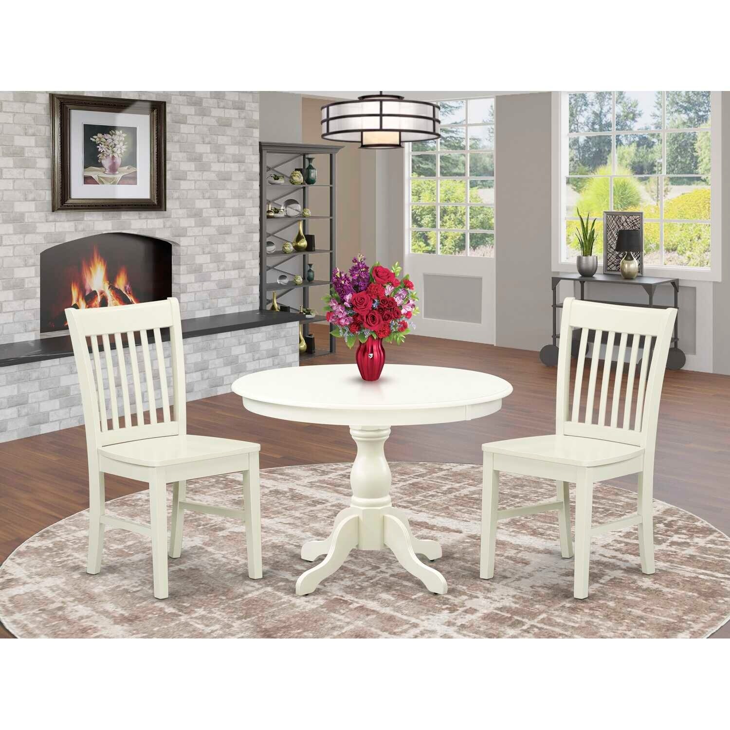 3-Piece Linen White Finish Solid Wood Top - Dining Room Set - Seats 4
