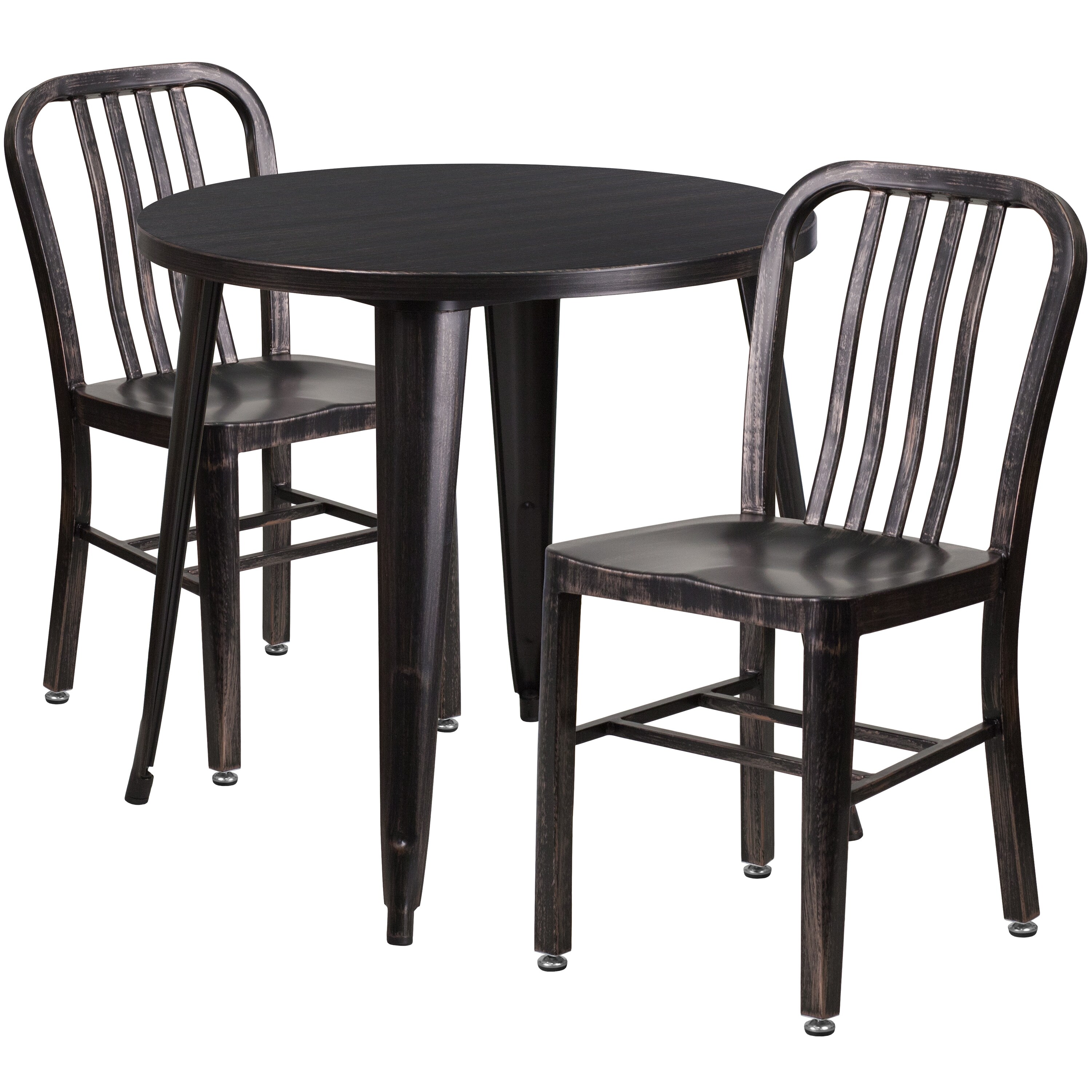 30'' Round Metal Indoor-Outdoor Table Set with 2 Vertical Slat Back Chairs