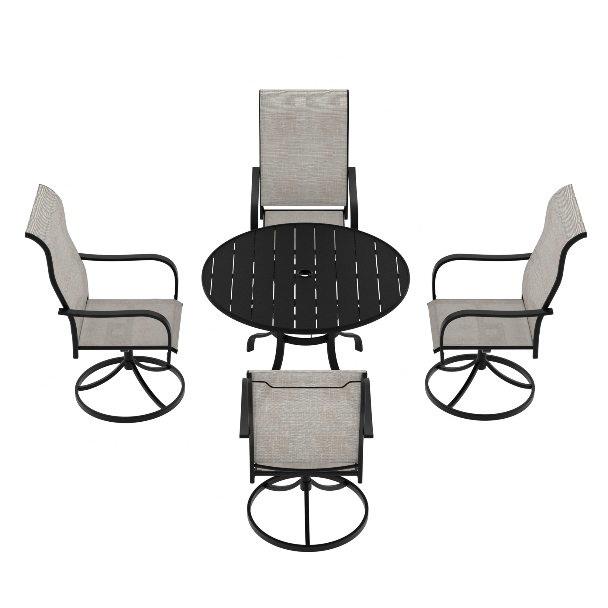 5 Piece Steel Frame Patio Dining Set, Swivel Dining Chair