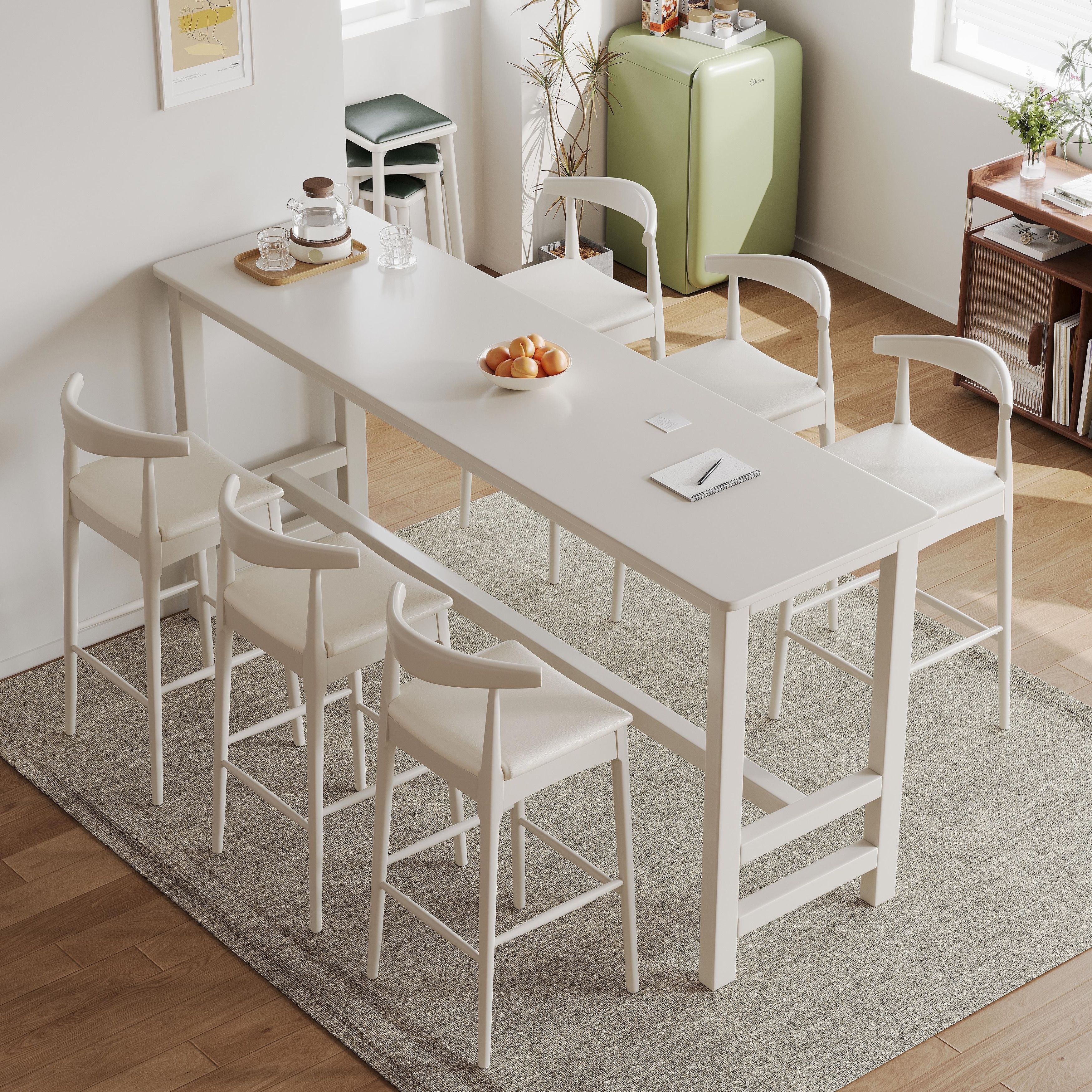 Set of 4 Extra Long Counter Height 60.2"L Dining Table Set, MDF & Steel Pub Set with 3 Stools, Footrest, Space-Saving Design