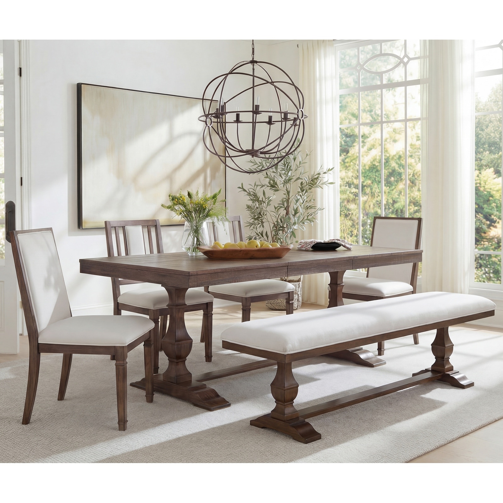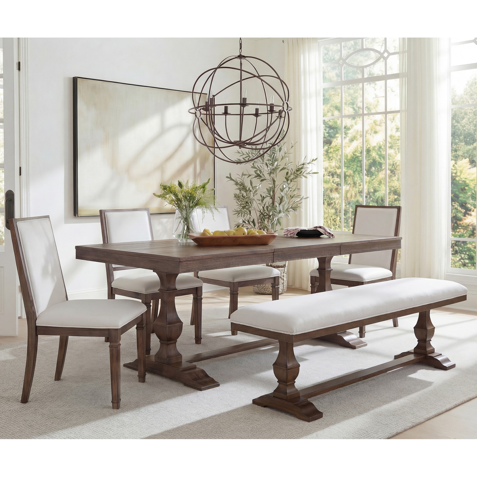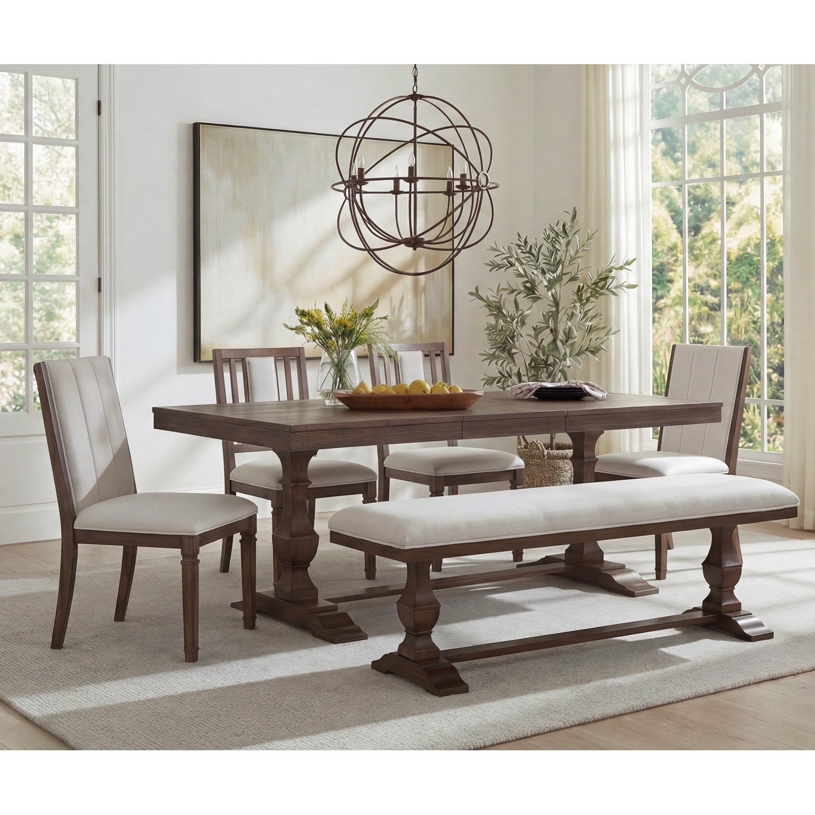 Dining Table Set for 4 with Upholstered Bench