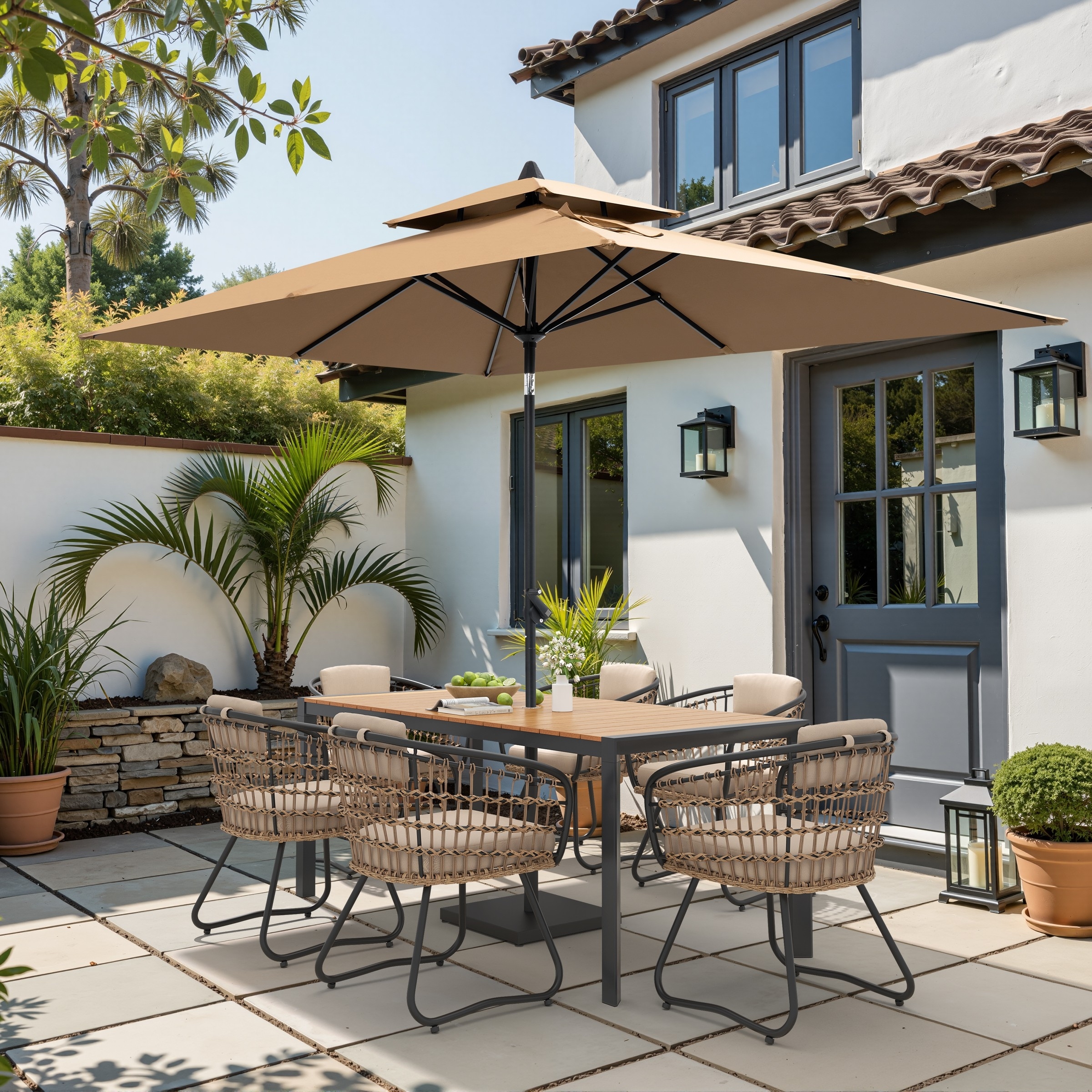 9/11-Piece Outdoor Patio Dining Set Aluminum Table and Chairs w/10 ft Market Umbrella and Base