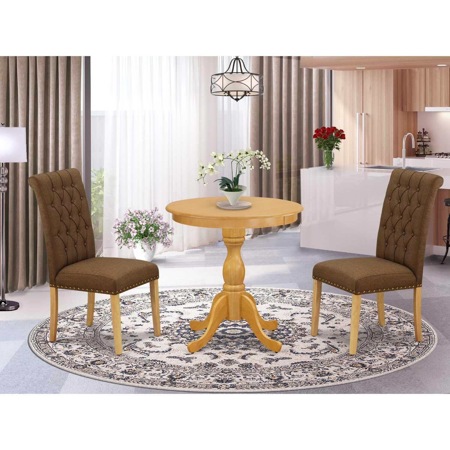 3-Piece Natural Oak Finish Solid Wood Top - Dining Room Set - Seats 4