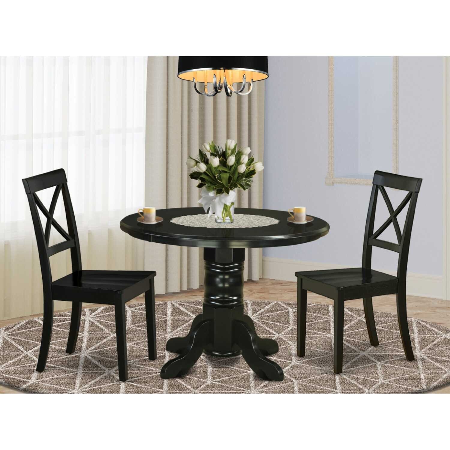 HomeStock 3-Piece Round Black Finish Solid Wood Top Dining Table with 2 Chairs