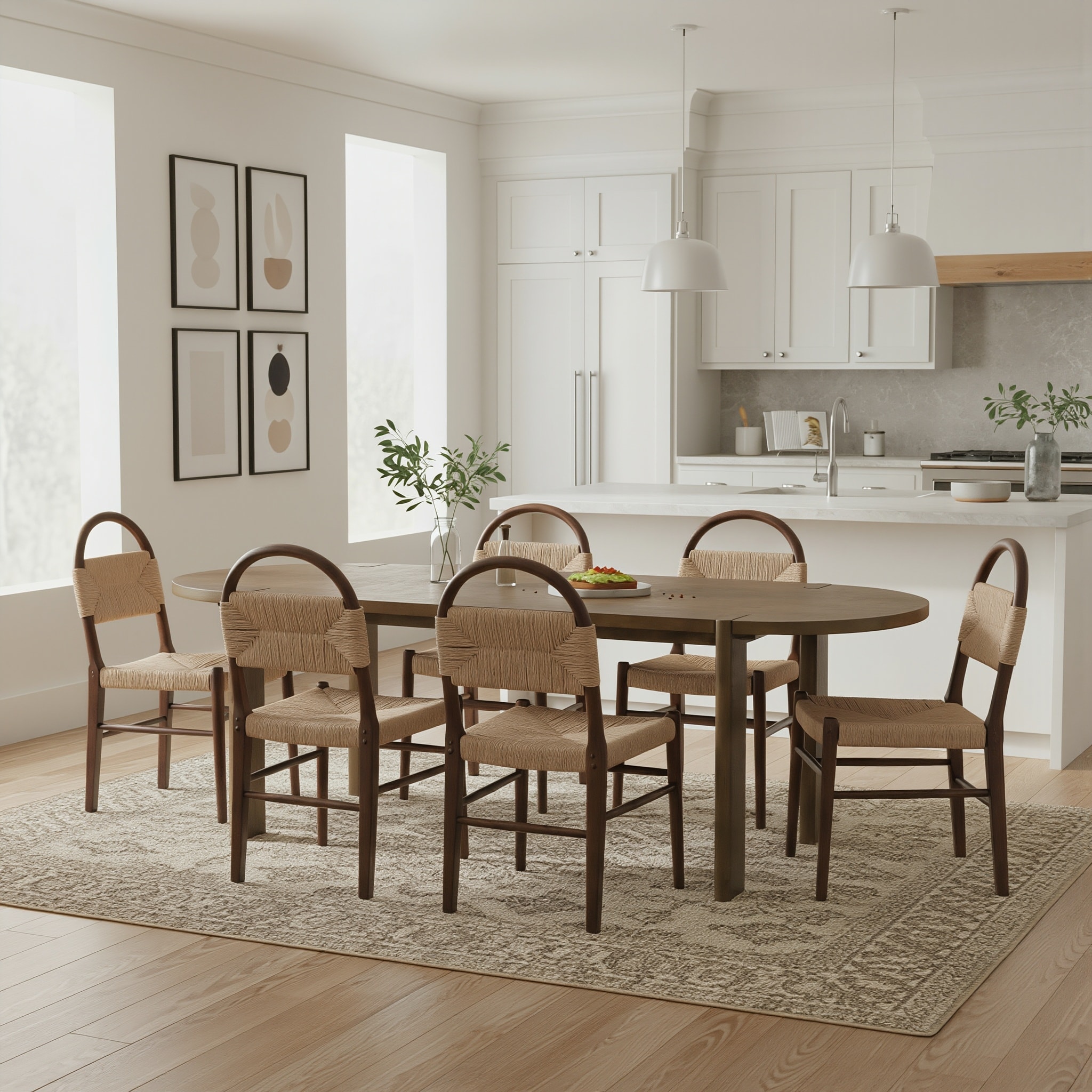 Christopher Knight Home - 7-Piece Farmhouse Dining Set with Solid Wood Oval Dining Table and Woven Paper Rope Chairs