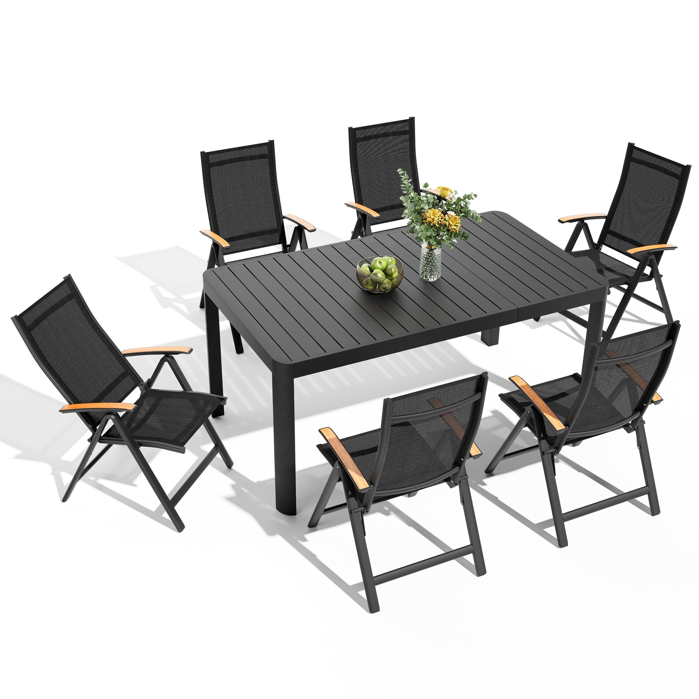 7-Piece Outdoor Patio Dining Set Aluminum Extendable Table with Adjustable Folding Chairs