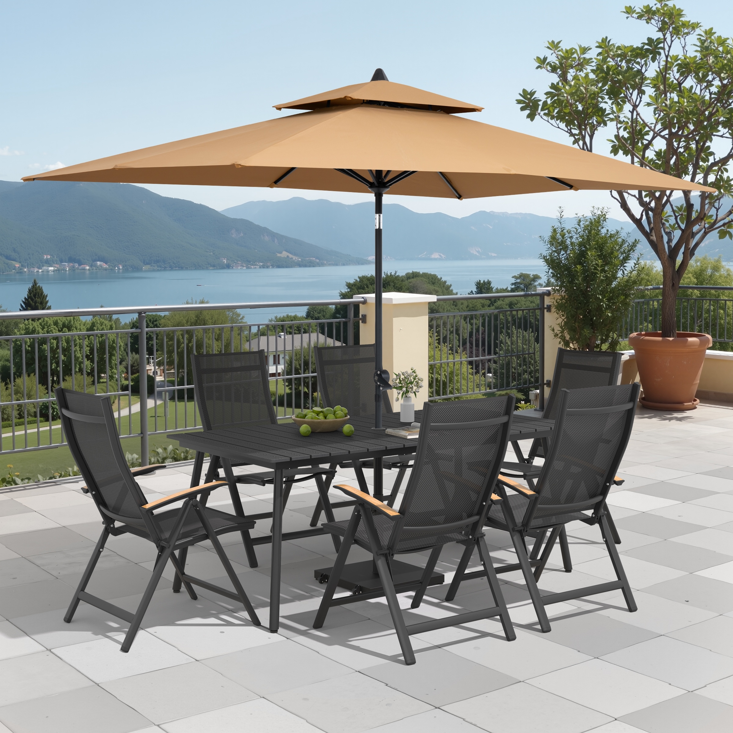 Experience Outdoor Dining Freedom with a Flexible Set Including 6 Chairs & 1 Table