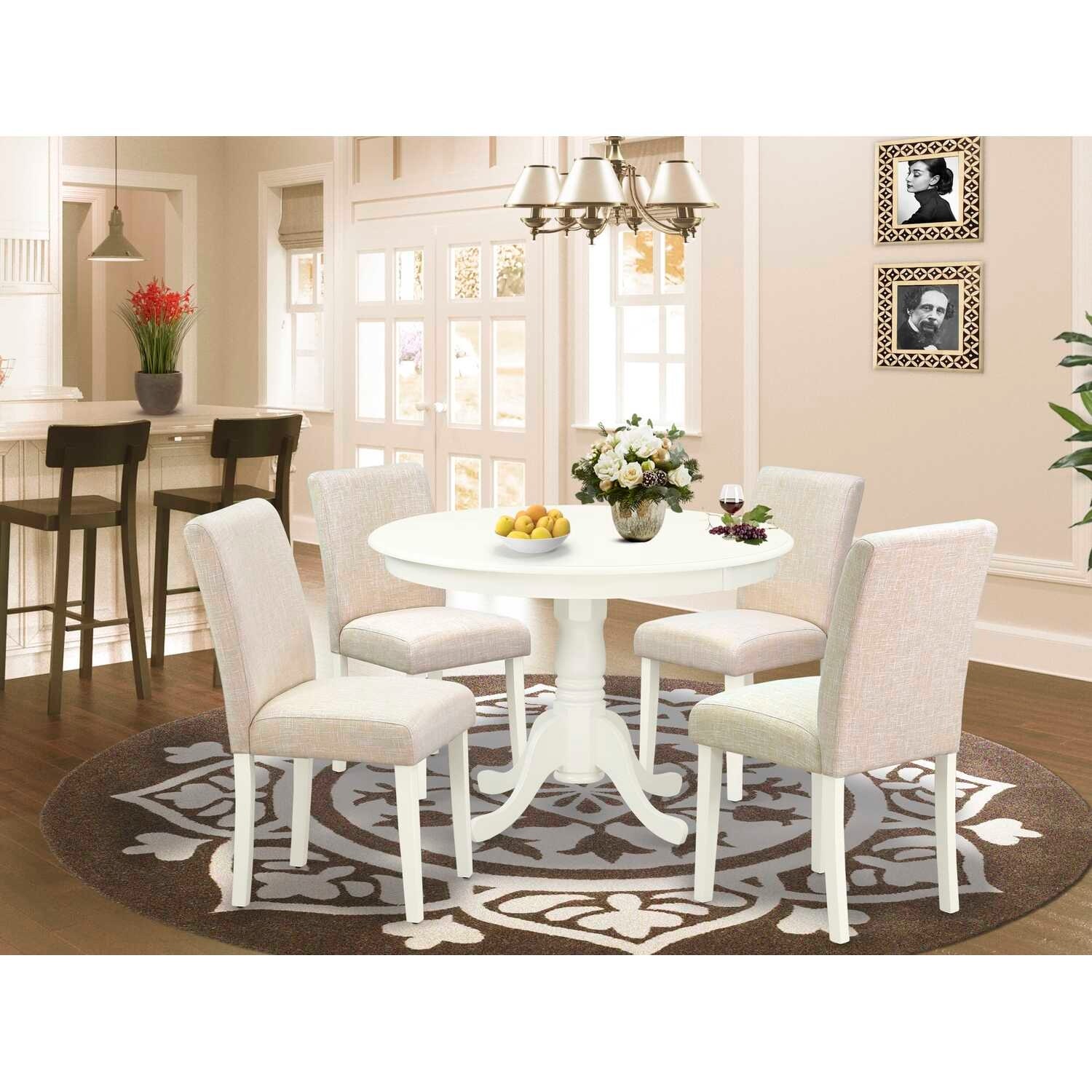 Round Dinette Set 5Pc - 42 Inch Table & 4 Parsons Chairs - Rustic Farmhouse Kitchen Dining Room Set