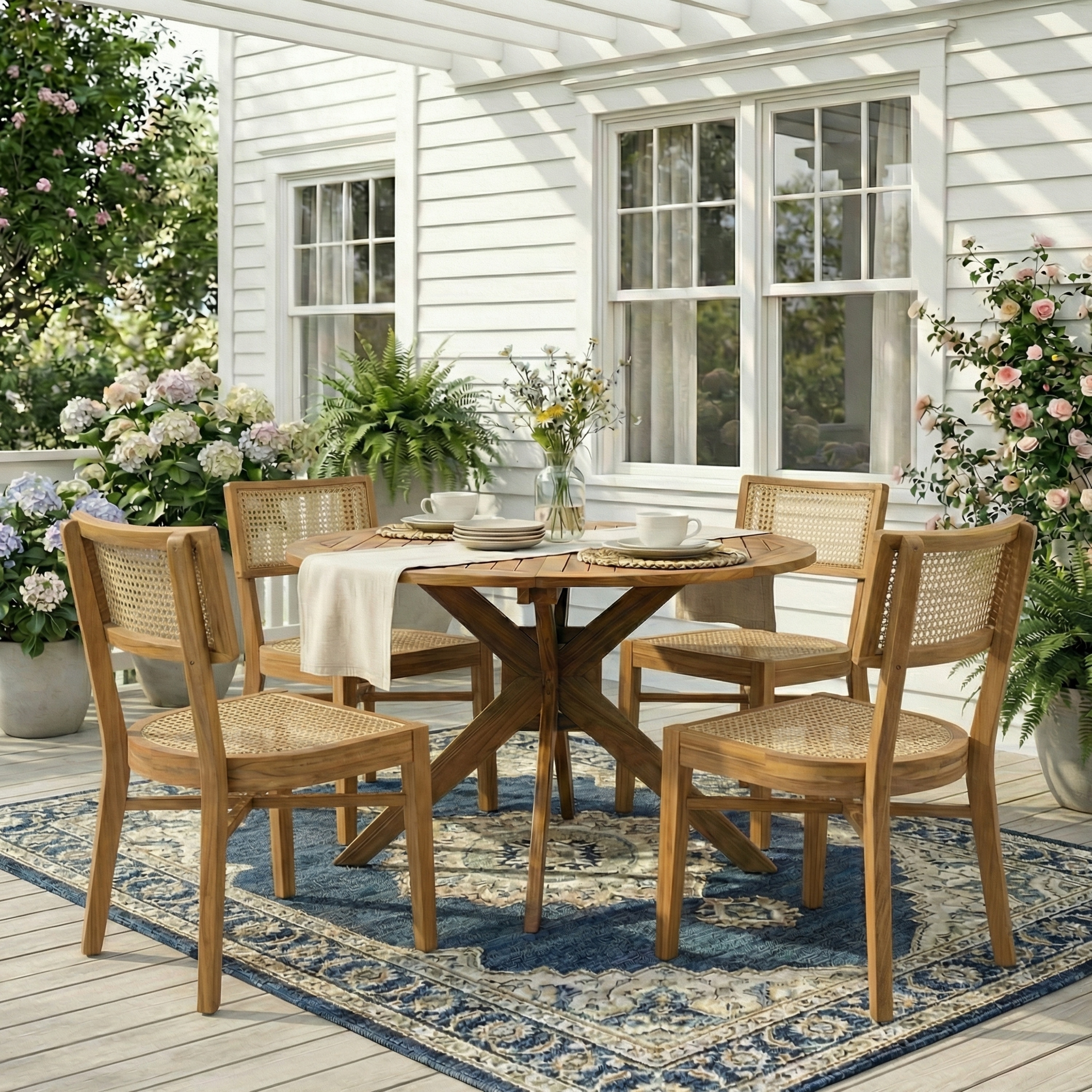 7-Piece Rippled Glass Outdoor Patio Table and Stacking Chairs Set