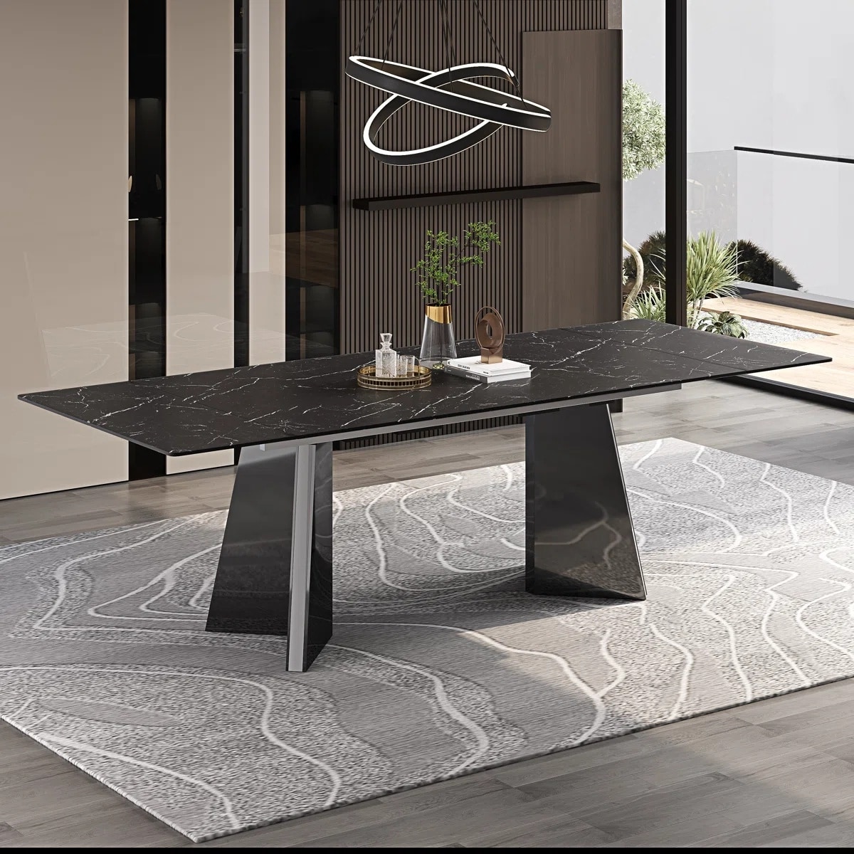 Minimalism Extendable Rectangular Sintered Stone Double Pedestal Dining Table Seat For 8-12 - 110.24"