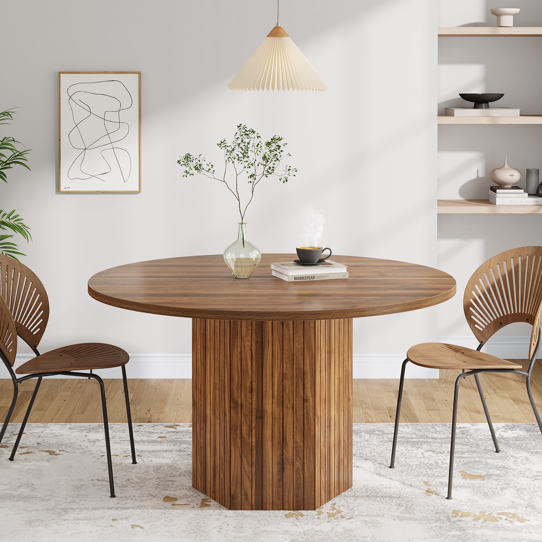 Small Industrial Round Kitchen Dining Table with Pedestal for 4
