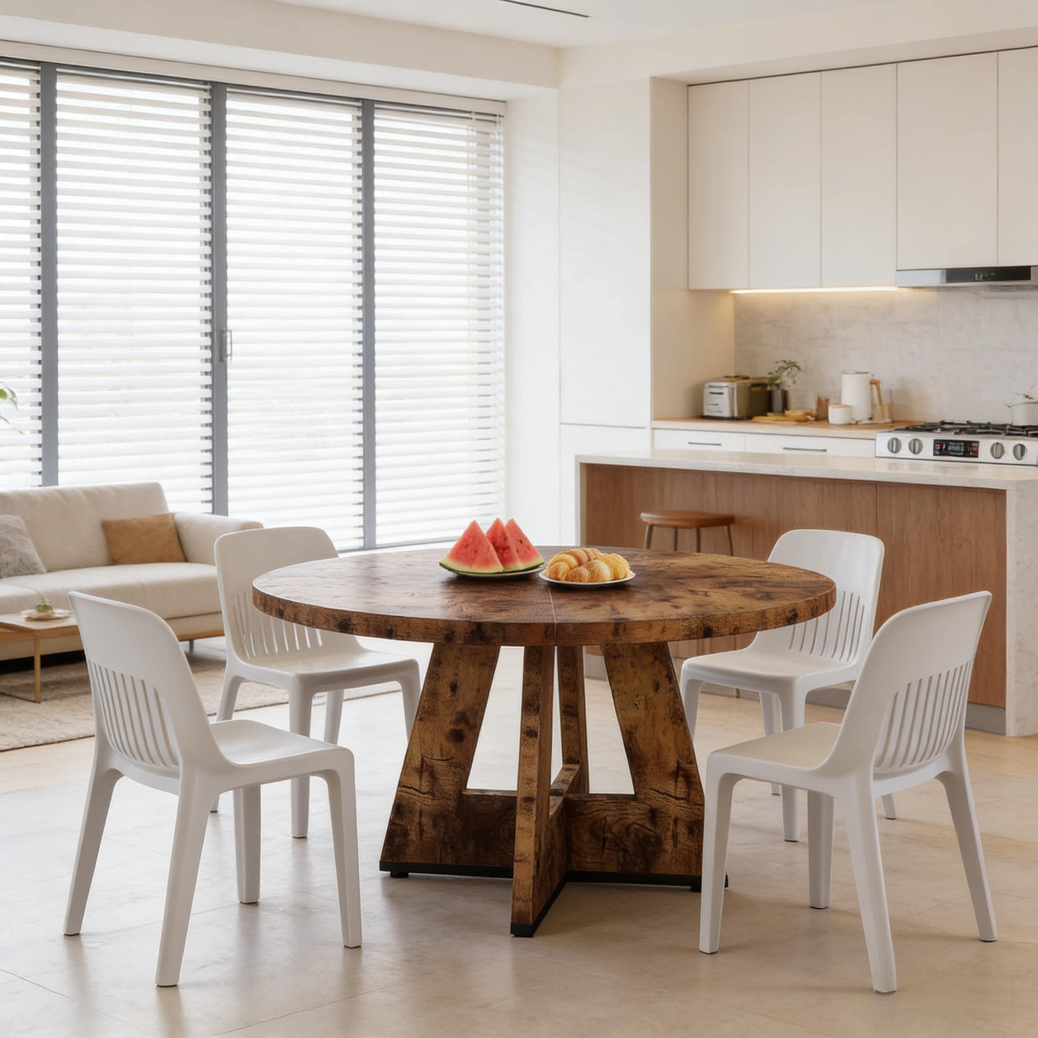 47-inch Round Dining Table Wood Dinner Table for 4-6 People
