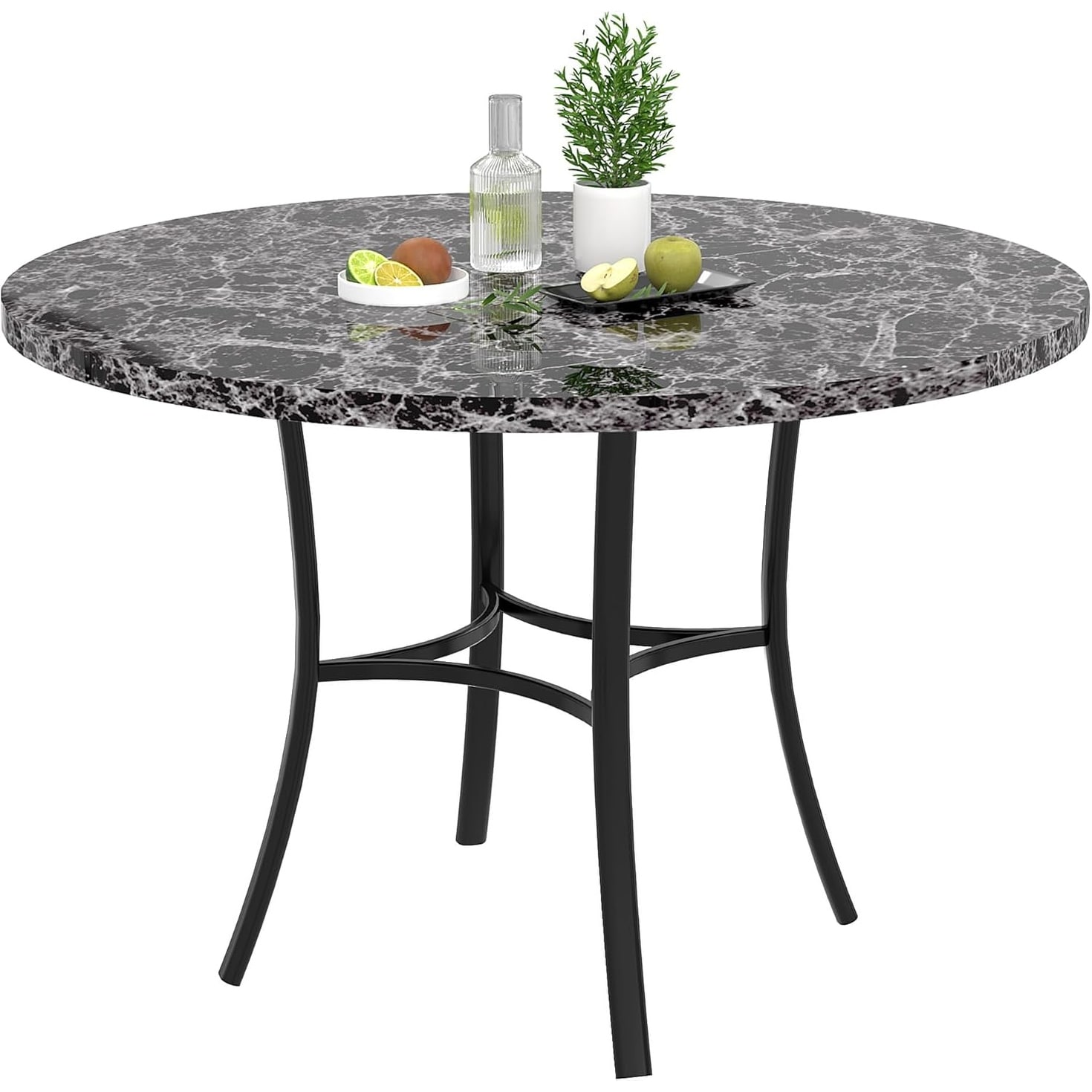 36 Inch Round Faux Marble Dining Table with Metal Frame, Space-Saving Grey Table for Kitchen and Home