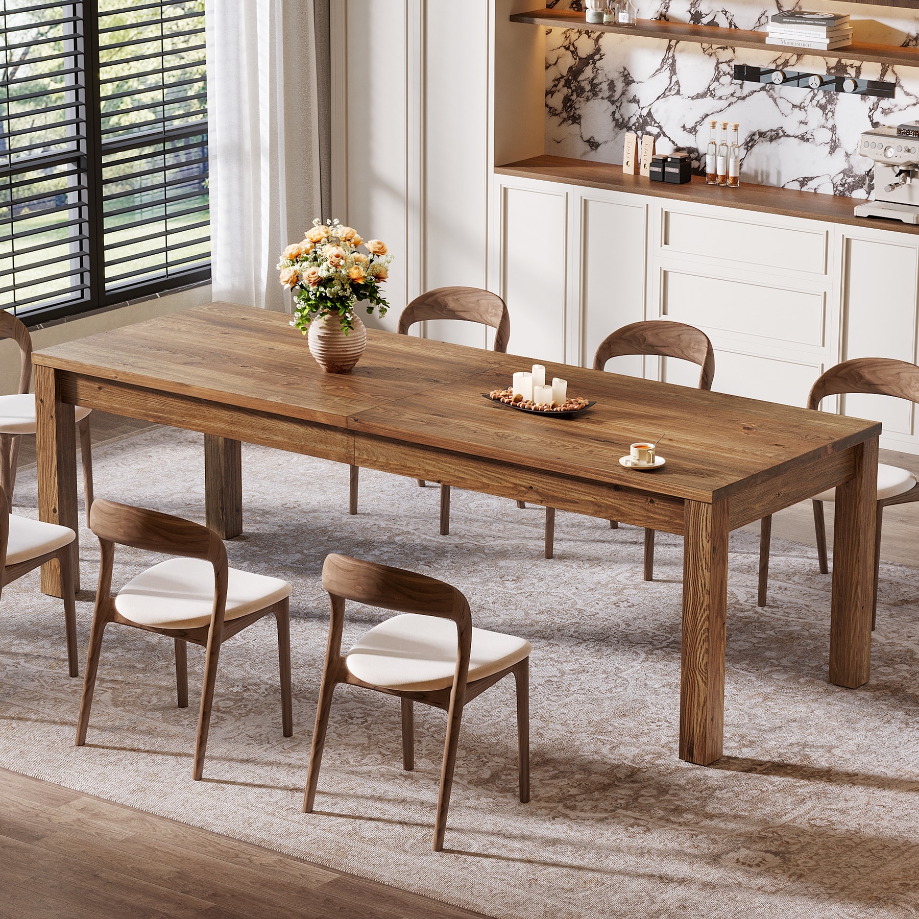 78.7" Dining Table for 6 8 10, Solid Wood Rustic Large Kitchen Table