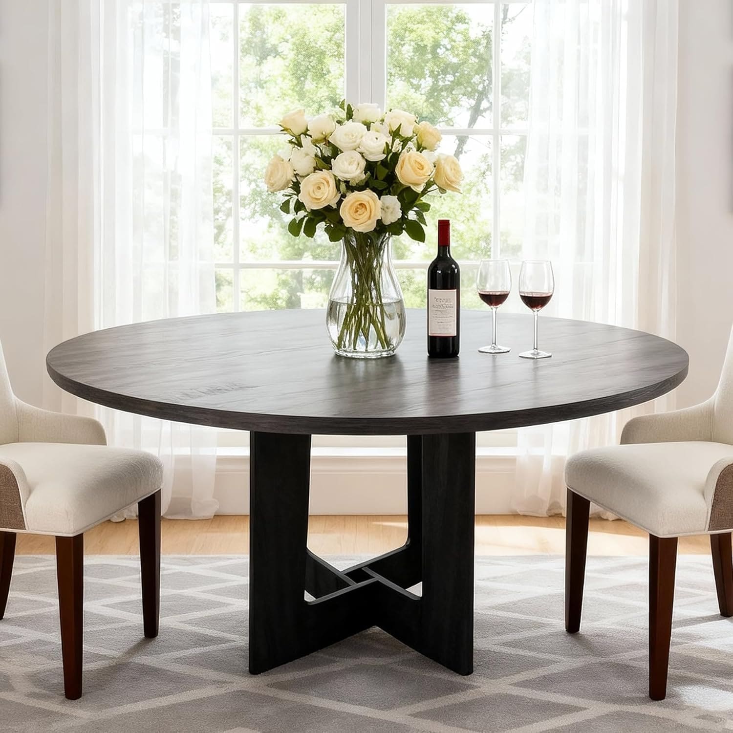 48" Farmhouse Round Dining Table with X-Cross Base