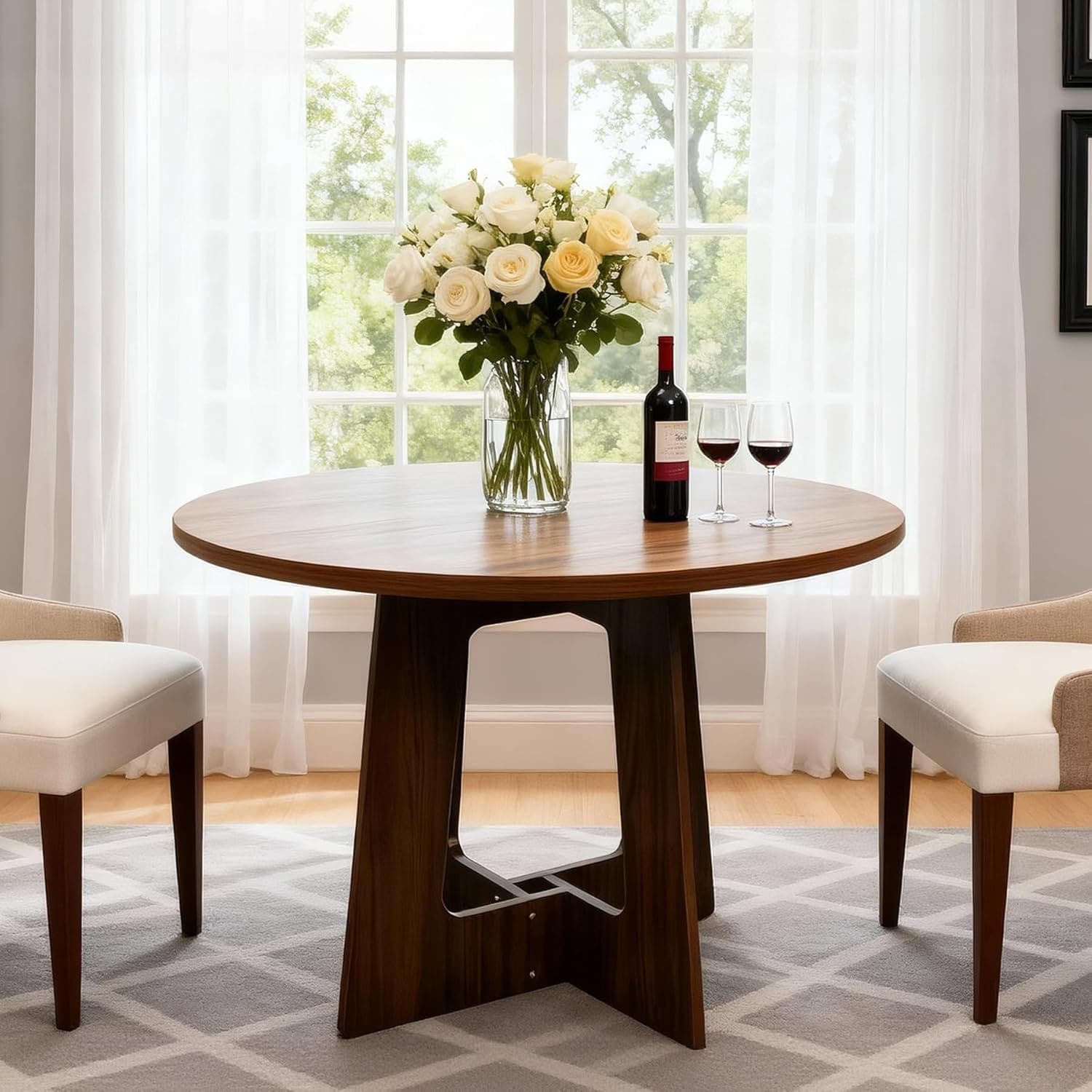 47.2" Solid Wood Round Dining Kitchen Table for 4-6 People with Intersecting Pedestal Base