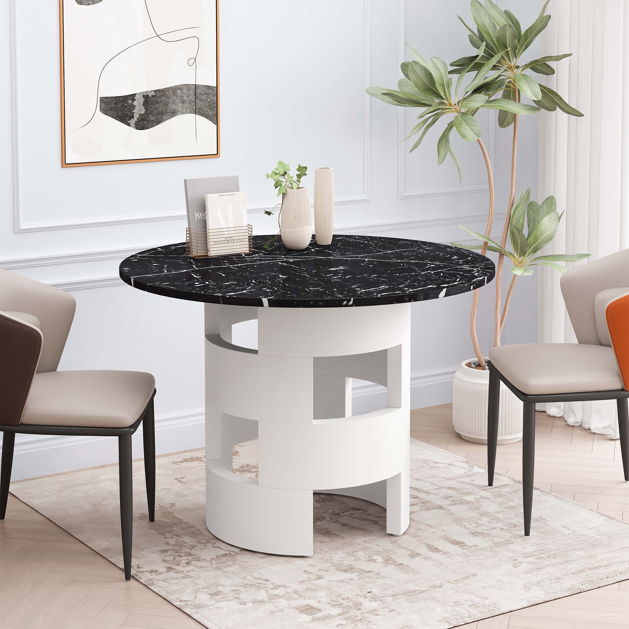 Modern Man-Made Stone Round Dining Table with Metal Legs-Position for 6 People