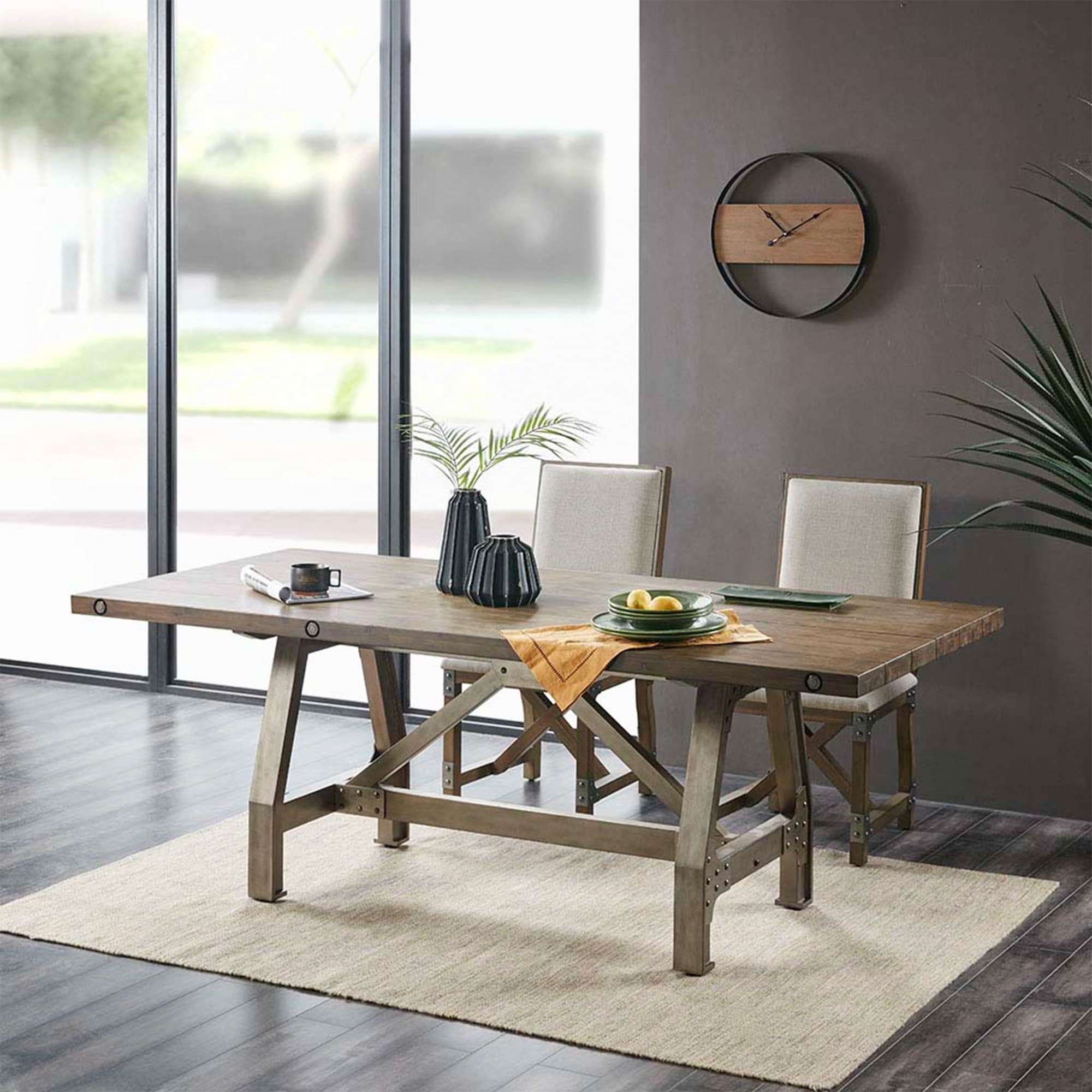 Modern Rectangle Dining Table, Stretchable, White Table Top+MDF X-Shape Table Leg with Metal Base
