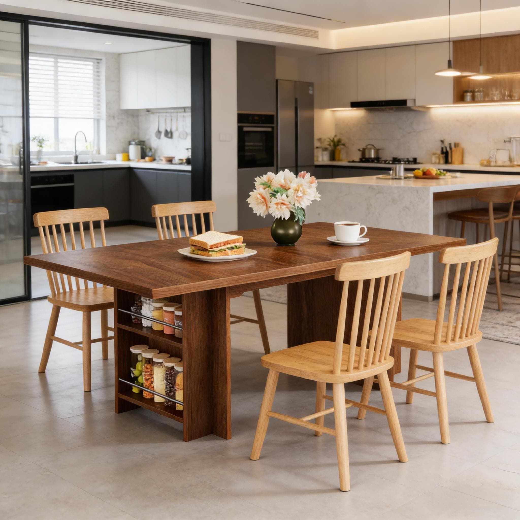 4-person dining table and chair set - square table with 4 chairs