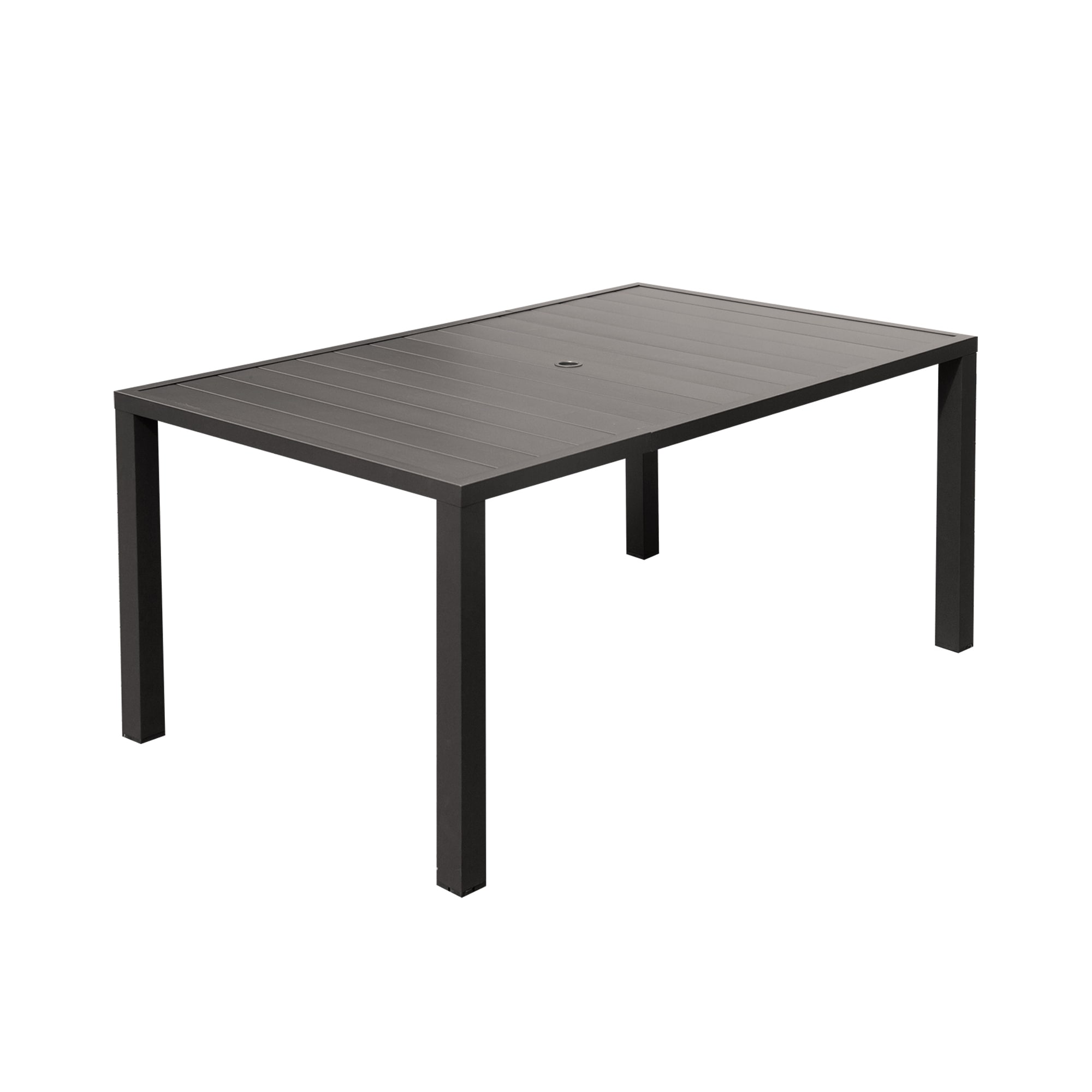 Clihome Outdoor Dining Table for 6 Person, Rectangular Slatted Metal Patio Table with Umbrella Hole