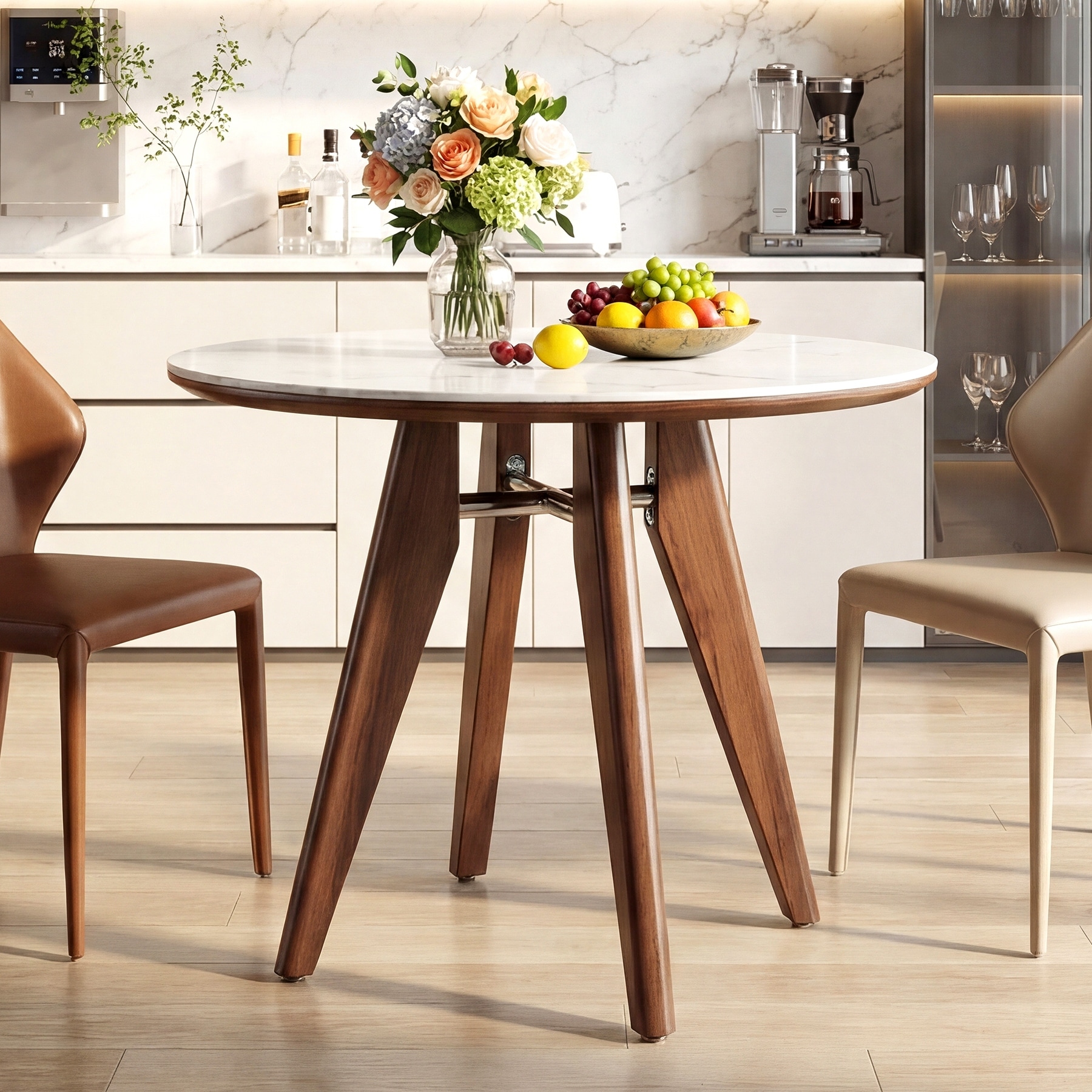 31.5" Round Dining Table, Modern Kitchen Table with Solid Wood Legs for Dining Room, Living Room