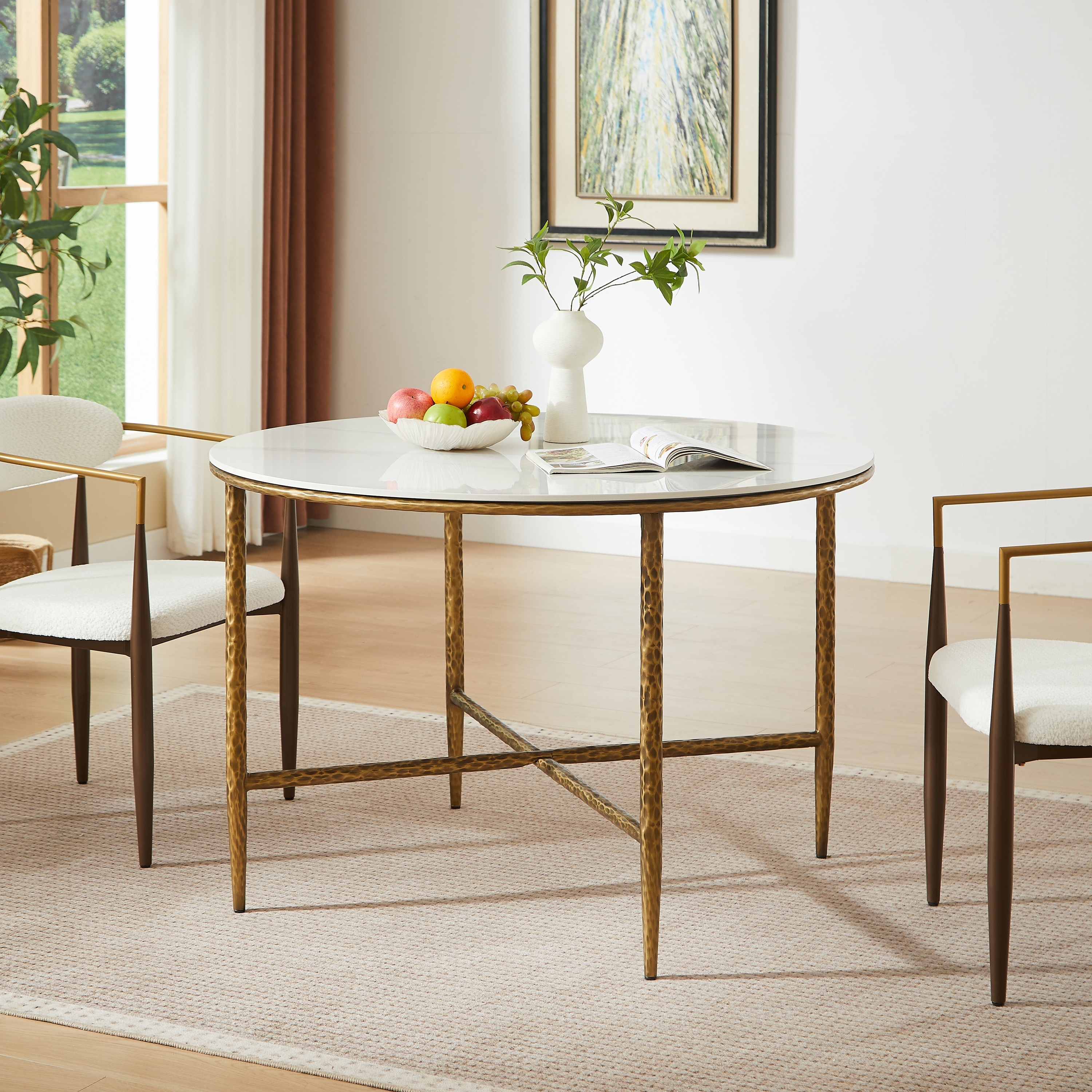 Christopher Knight Home - Modern Sintered Stone Round Dining Table with Forged Brass Metal Legs