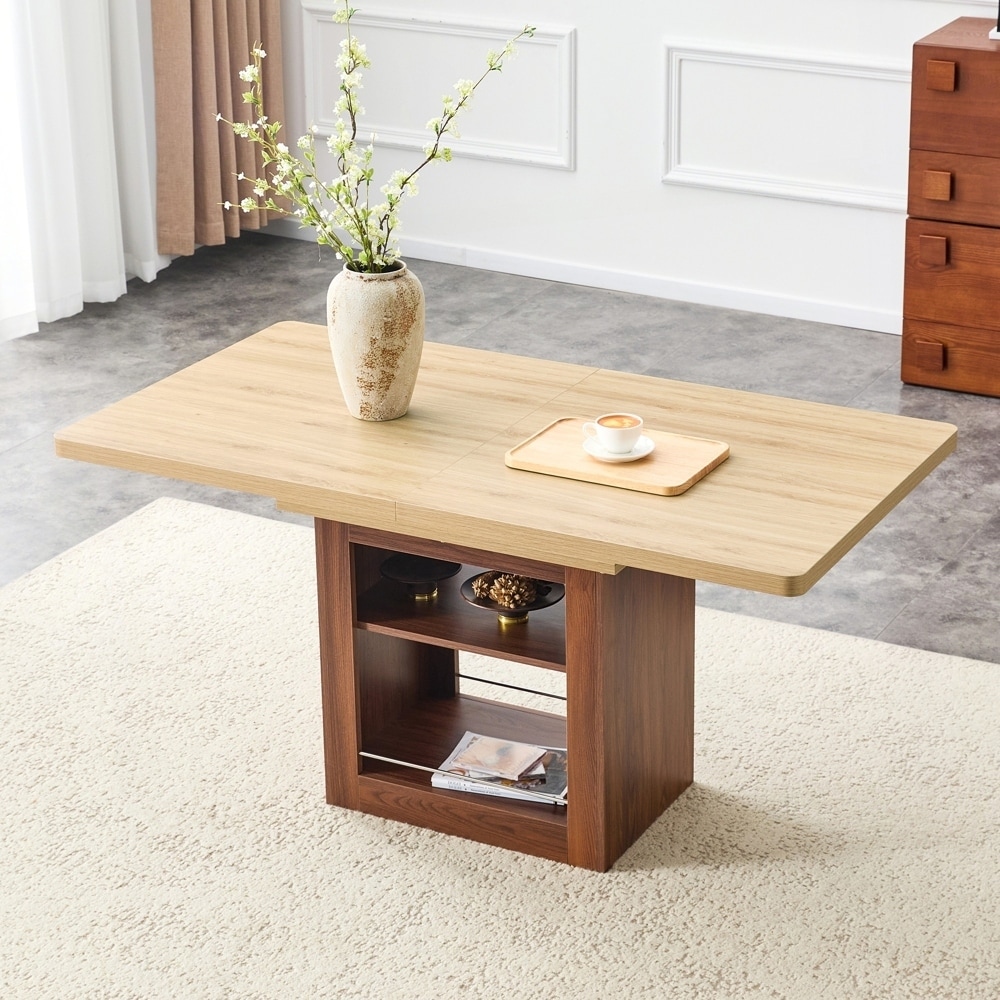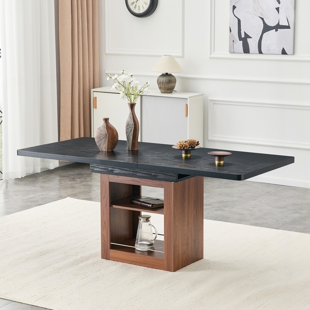 Patio Rectangle Dining Table with Umbrella Hole, Wood-Grain Tabletop