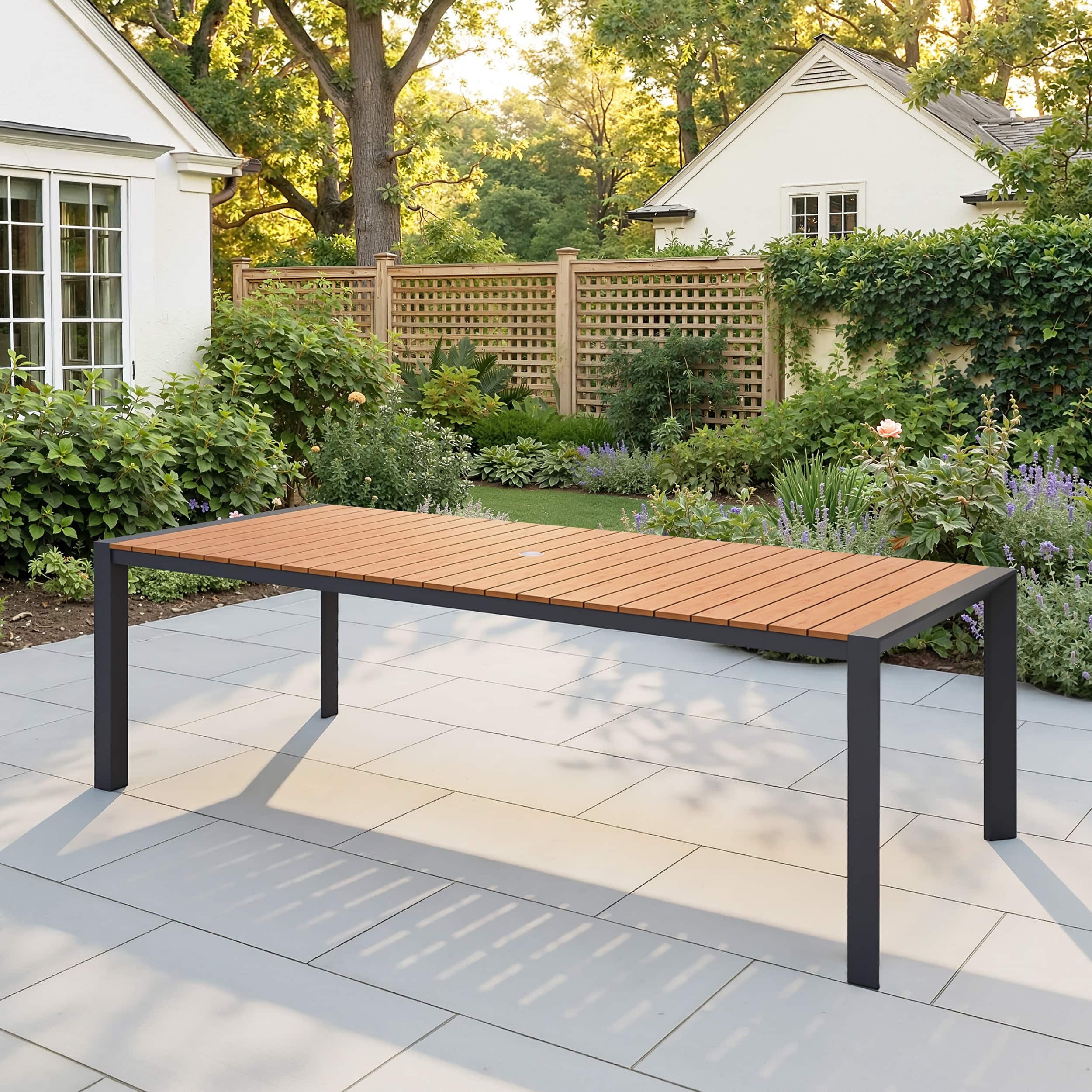 Outdoor All-Weather Aluminum Patio Rectangular Dining Table with Umbrella Hole