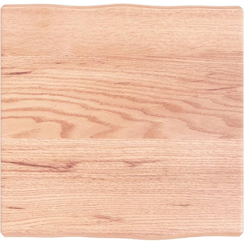 Light Brown Treated Solid Oak Wood Table Top with Live Edge Detail, Handcrafted, Square Shape, Versatile Design - Light Brown