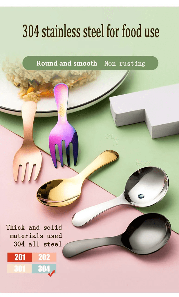 Outdoor Tourism 304 Stainless Steel Portable Tableware Children Tableware Spoon And Fork Combination gold