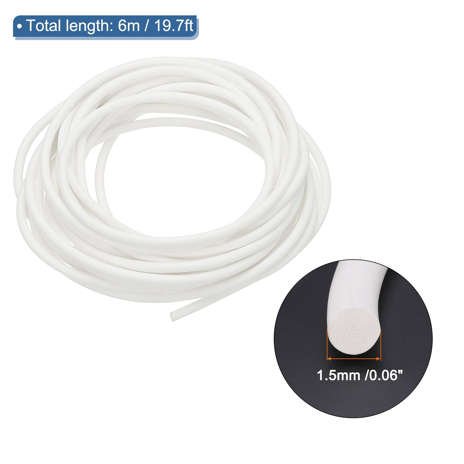 Silicone Foam Seal Strip, Dia Round Solid Sponge - White