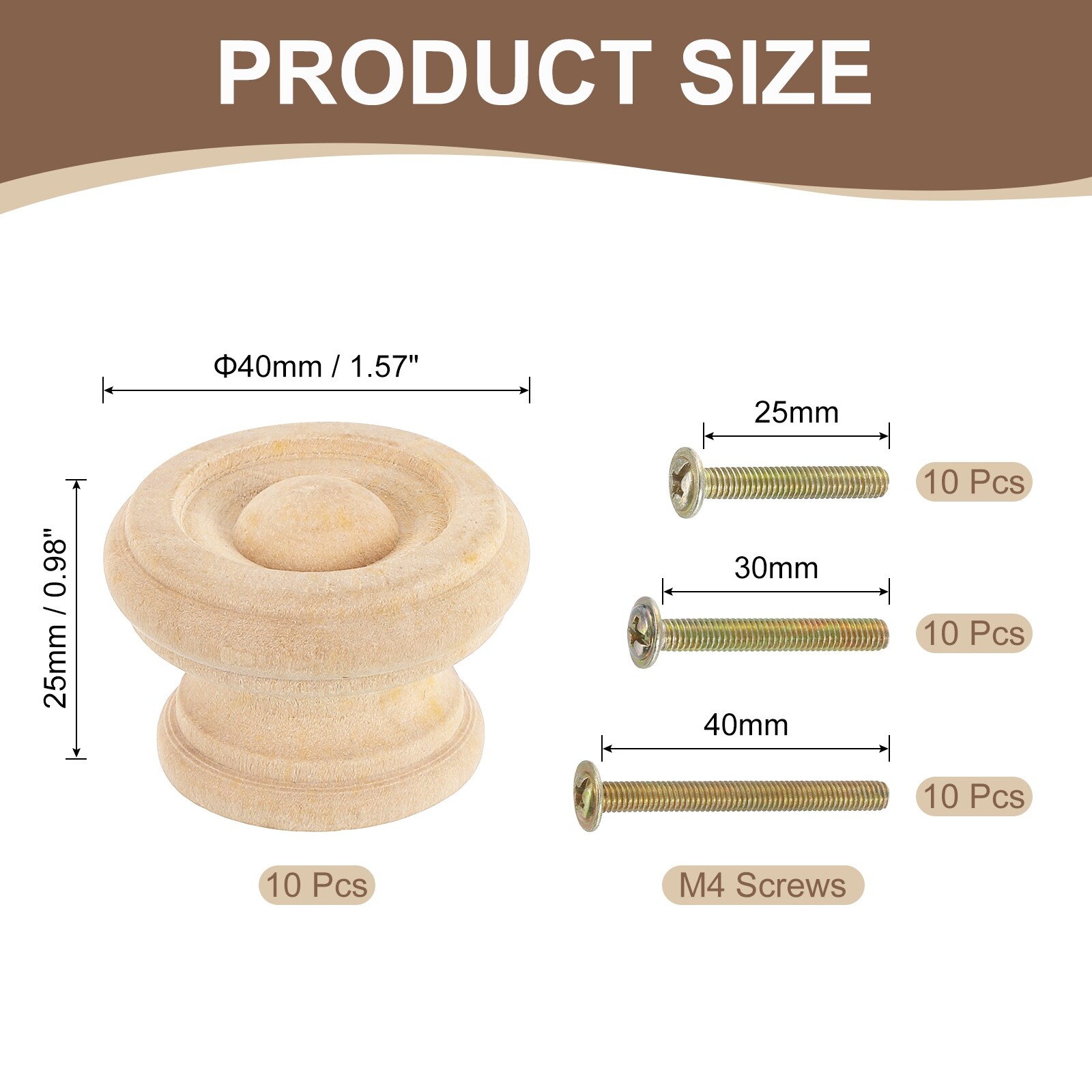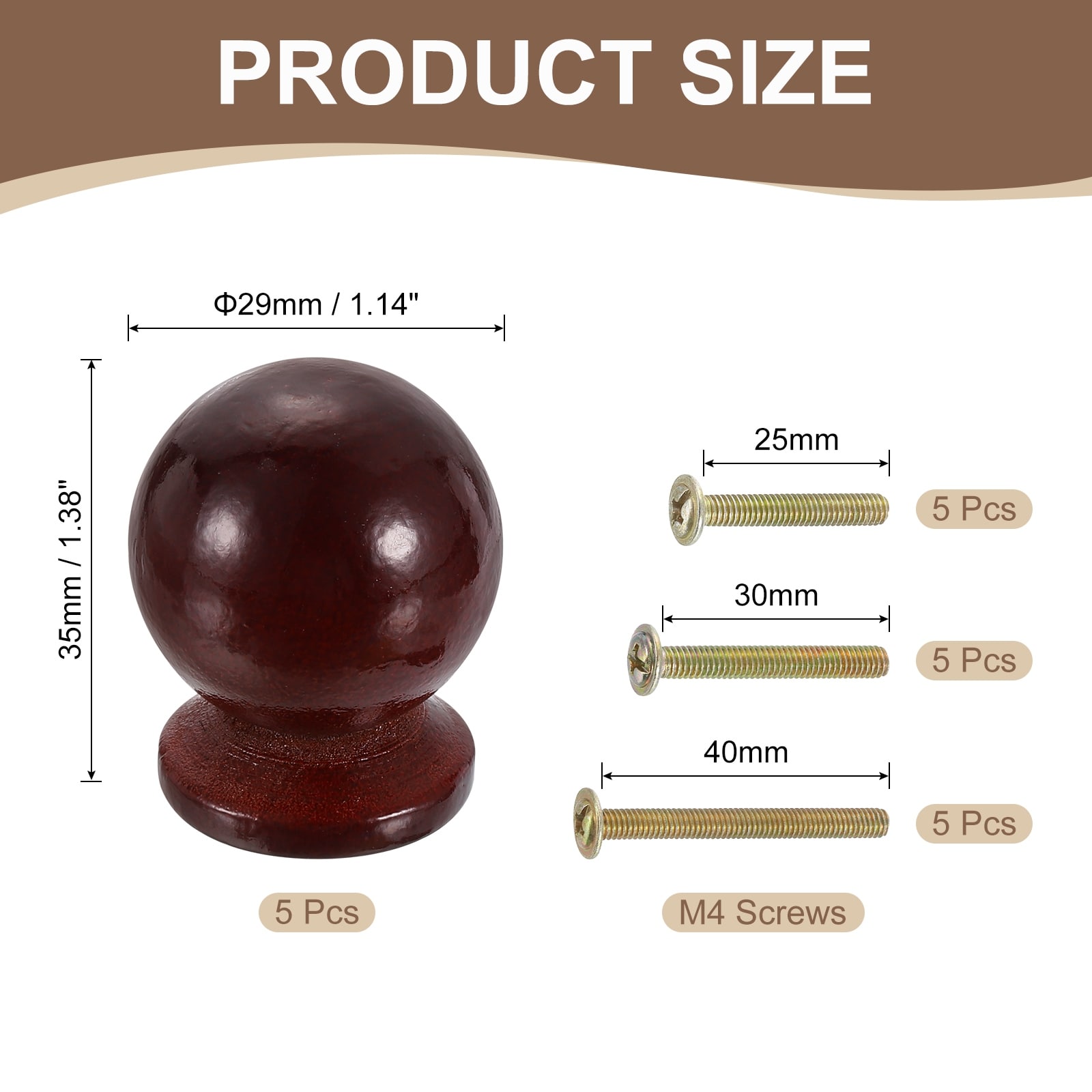 Round Wood Drawer Knob, Round Cabinet Knobs Ball Shape Wooden Knobs with Screws for Furniture Drawer Dresser Wardrobe Cupboards