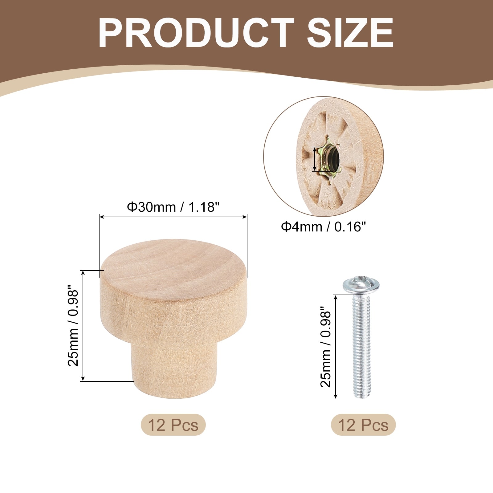 Round Wood Drawer Knob, Flat Head Dresser Knobs Wooden Knobs with Screws for Furniture Drawer Dresser Wardrobe Cupboard