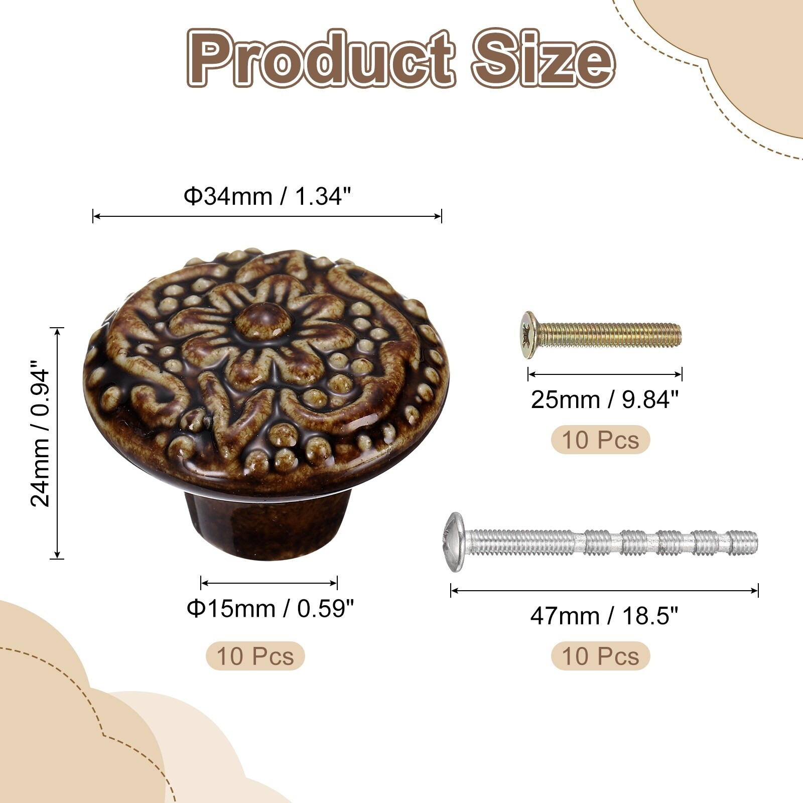34mm Flower Pattern Ceramic Knobs with Screws